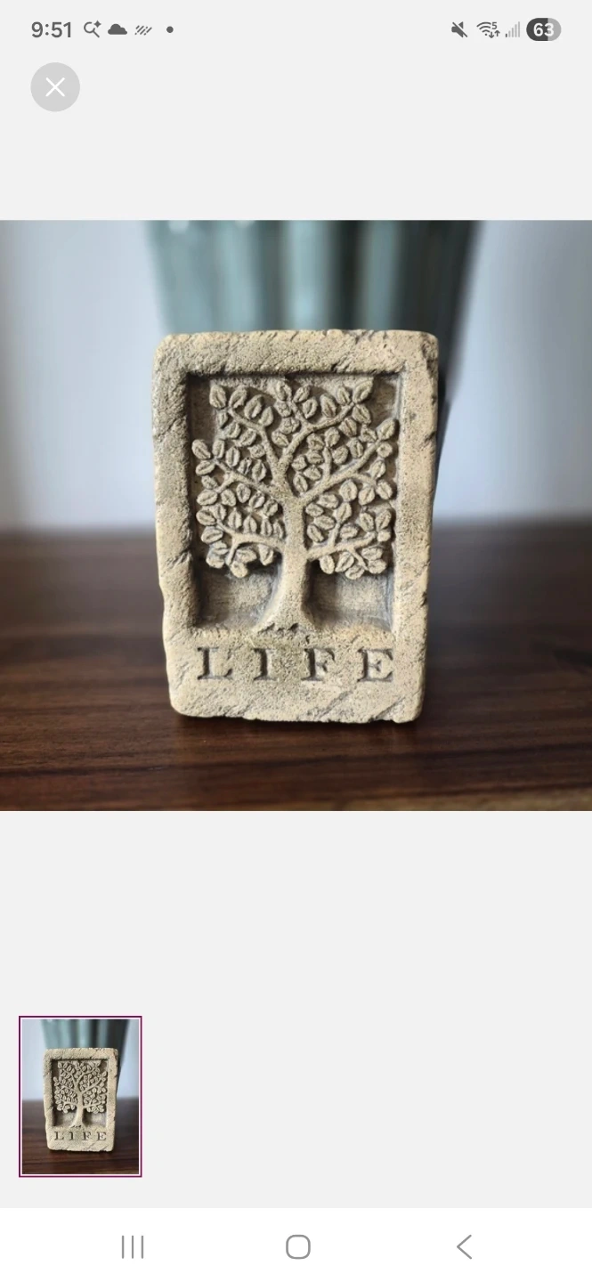 Stone accent piece featuring a carved tree of life design. The word "LIFE" is embossed at the bottom. It's a solid, decorative item that can be placed on a shelf or table. Its neutral stone colour fits well with various decor styles.