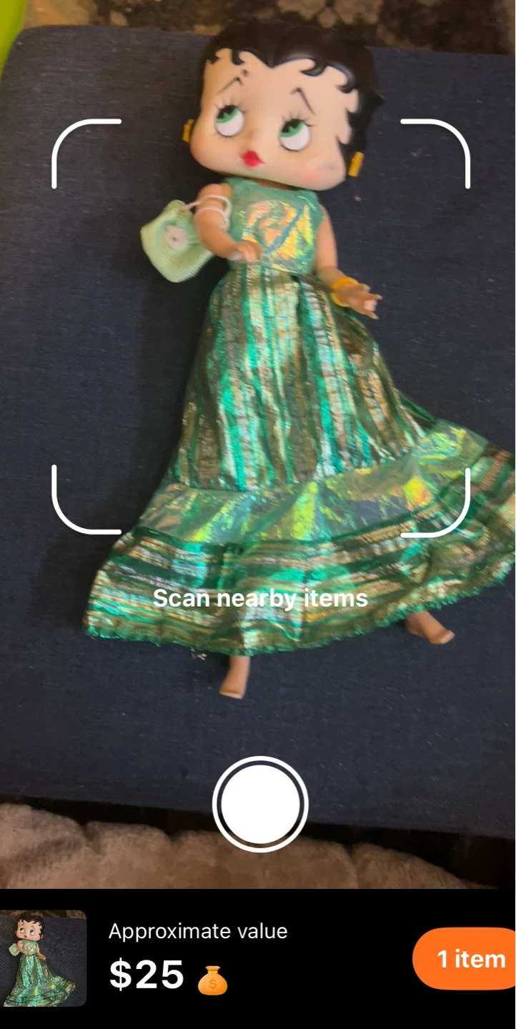 Selling a vintage Betty Boop doll manufactured by Marty Toy in 1986. The doll is wearing a green dress. Please note that the legs are having a hard time staying attached and I do not know where the shawl/wrap has gone.