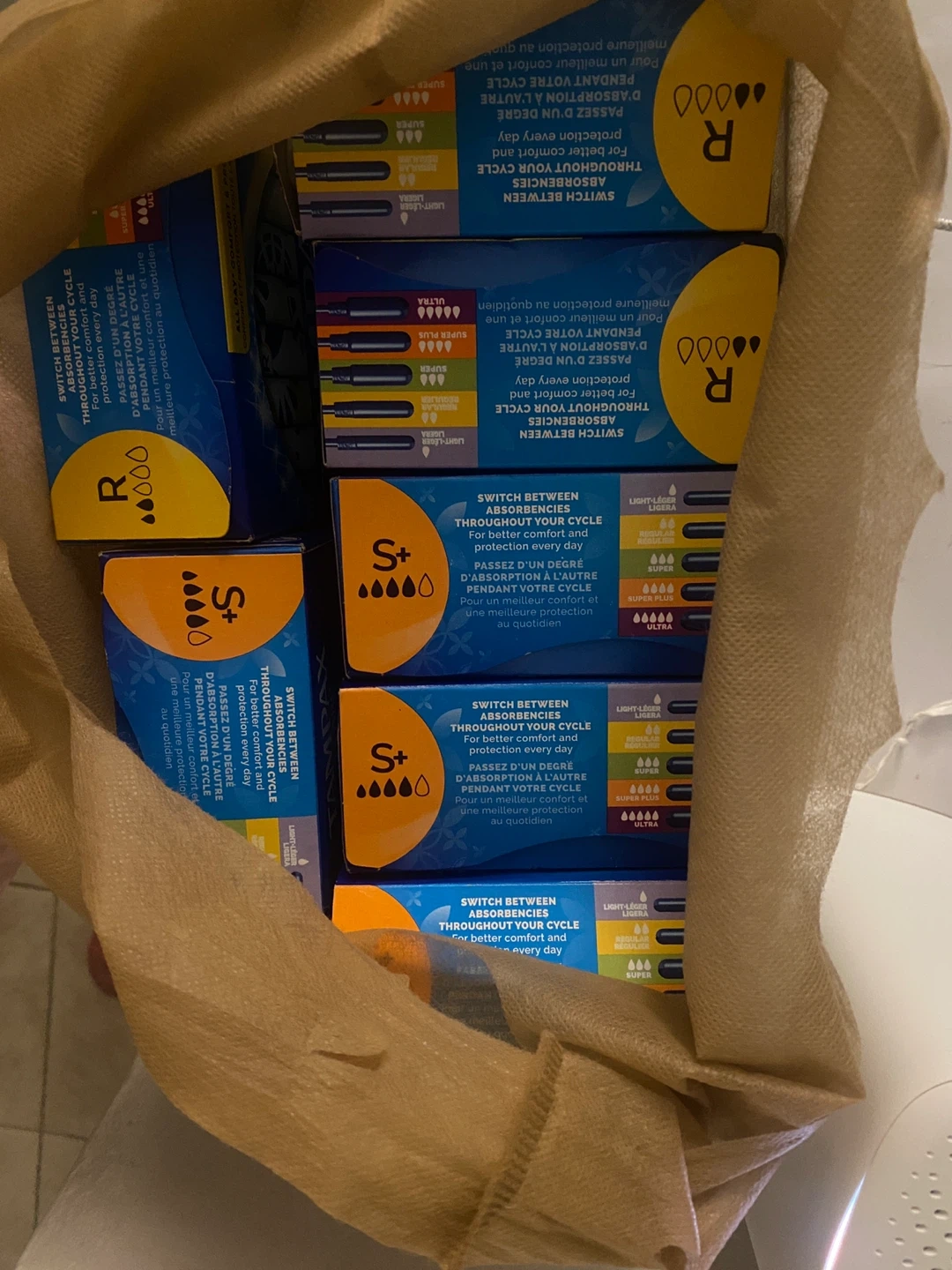 Selling a bag of Tampax tampons! Includes Regular (R) and Super Plus (S+) absorbencies. Great for switching between absorbencies throughout your cycle for comfort and protection