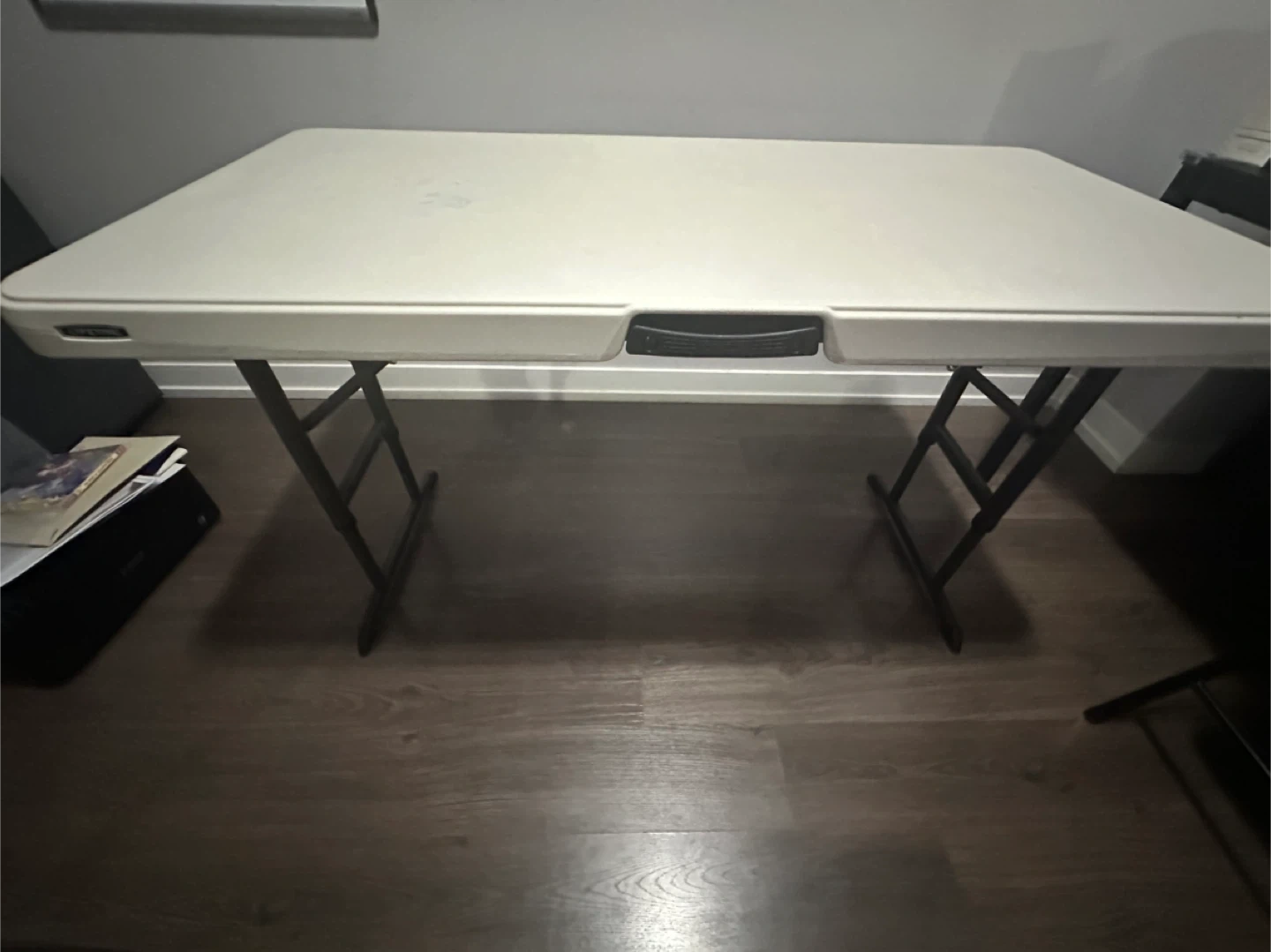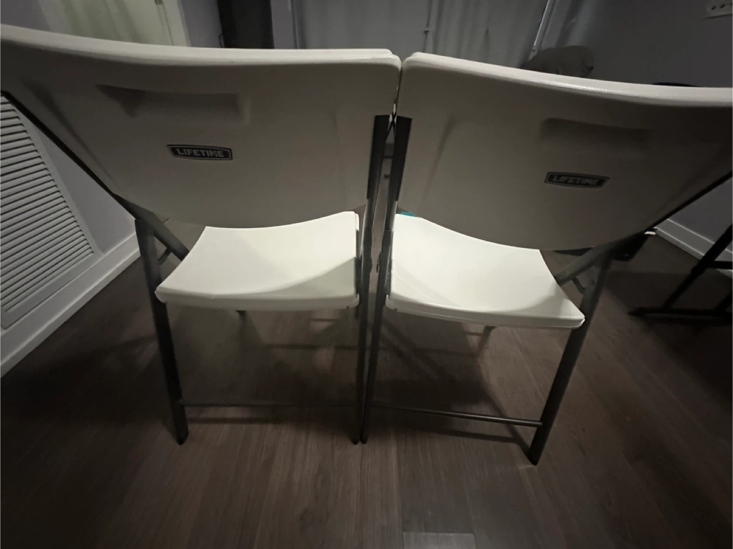 Selling a gently used Lifetime folding table and folding chairs. Perfect for extra seating or hosting events. The chairs are also Lifetime brand, matching the table.