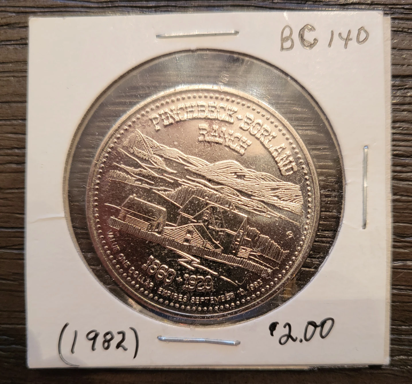 Selling a Pinchbeck-Borland Ranch Trade Commerative Token, September 1860-1920. From the City of Williams Lake, British Columbia.