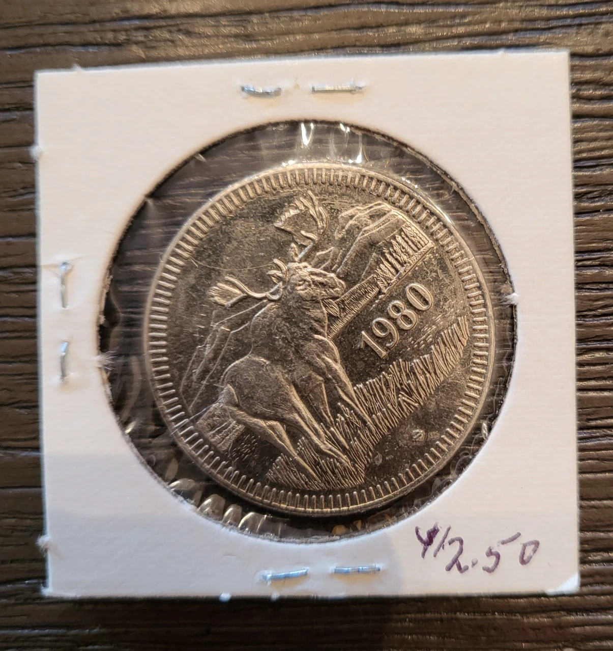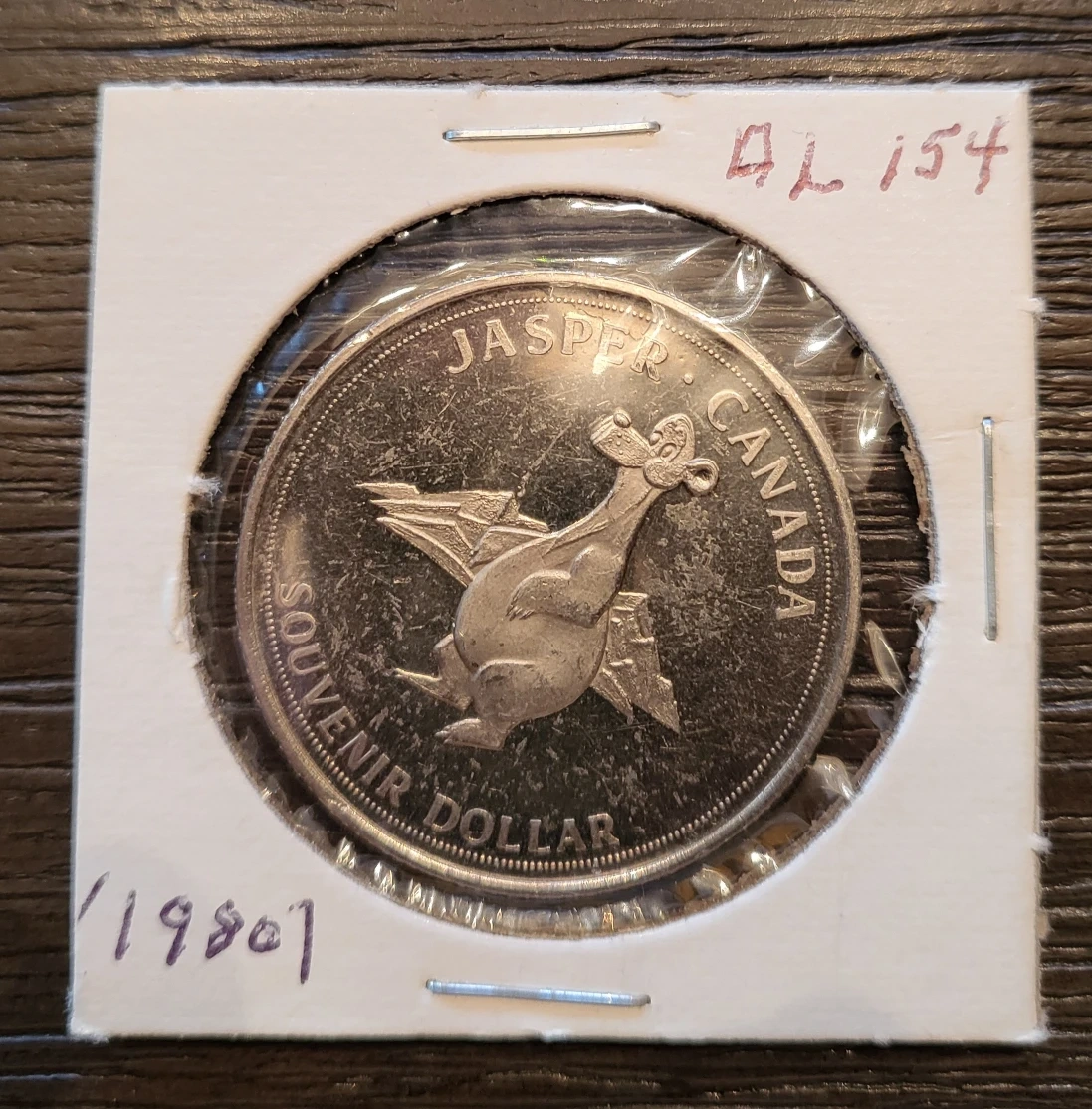 Selling a souvenir token from Jasper, Canada, dated 1980. It's in a protective holder.