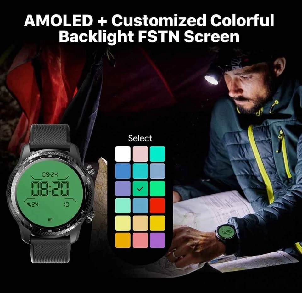 Dual-layer display (AMOLED + FSTN) for extended battery life