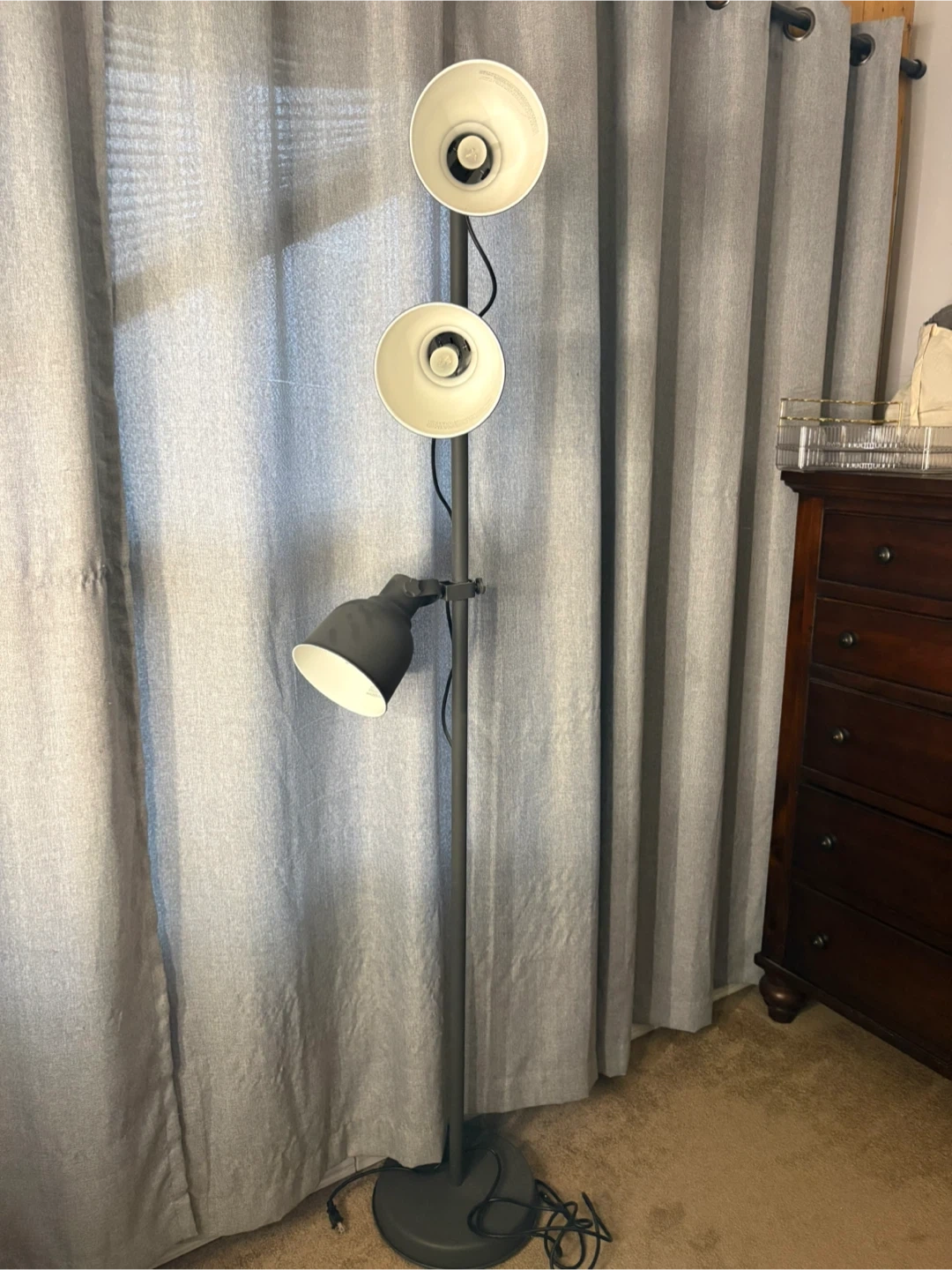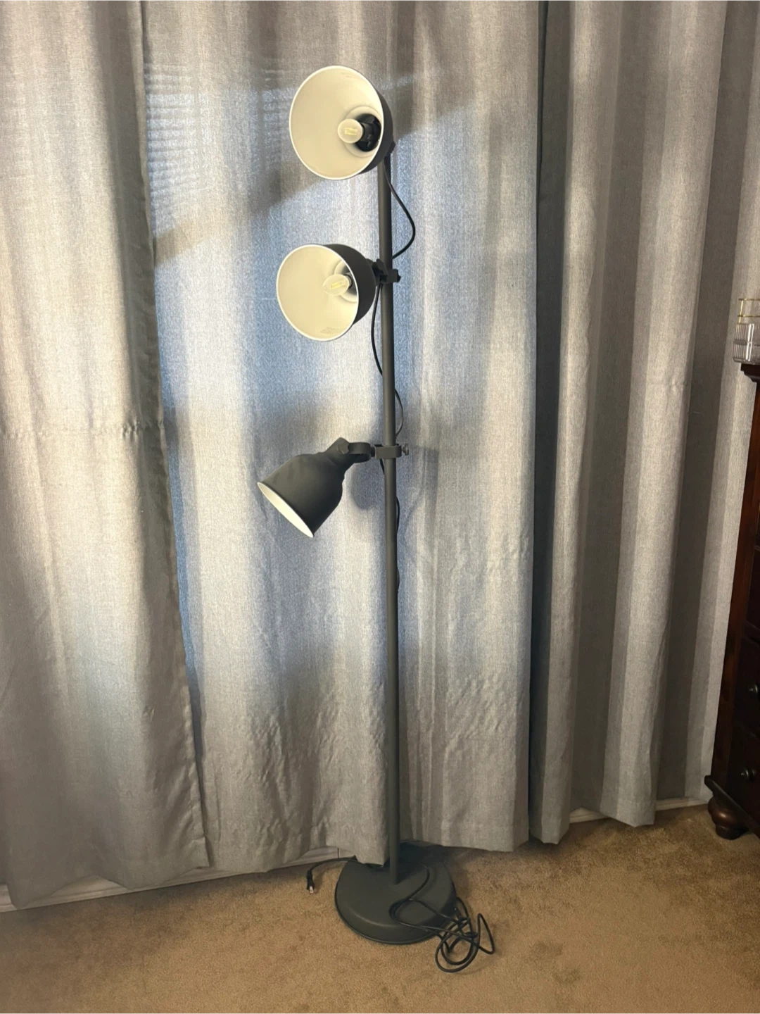 Selling 2 floor lamps from IKEA! It has three adjustable lights, perfect for any room in the house. It's in great condition and ready for a new home. $100 for both or can sell separate open to offers