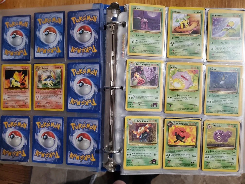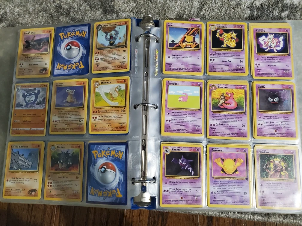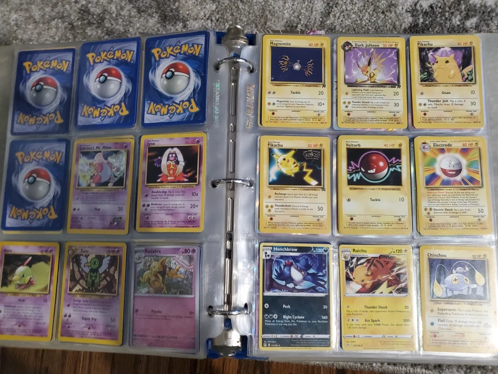 Selling a binder full of a mixture of vintage, newer and some 90's bootleg Pokémon trading cards! Also comes with a couple boxes of newer cards. There are more cards than in the pictures, i hir the picture limit. Let me know if there's any you would like to see.