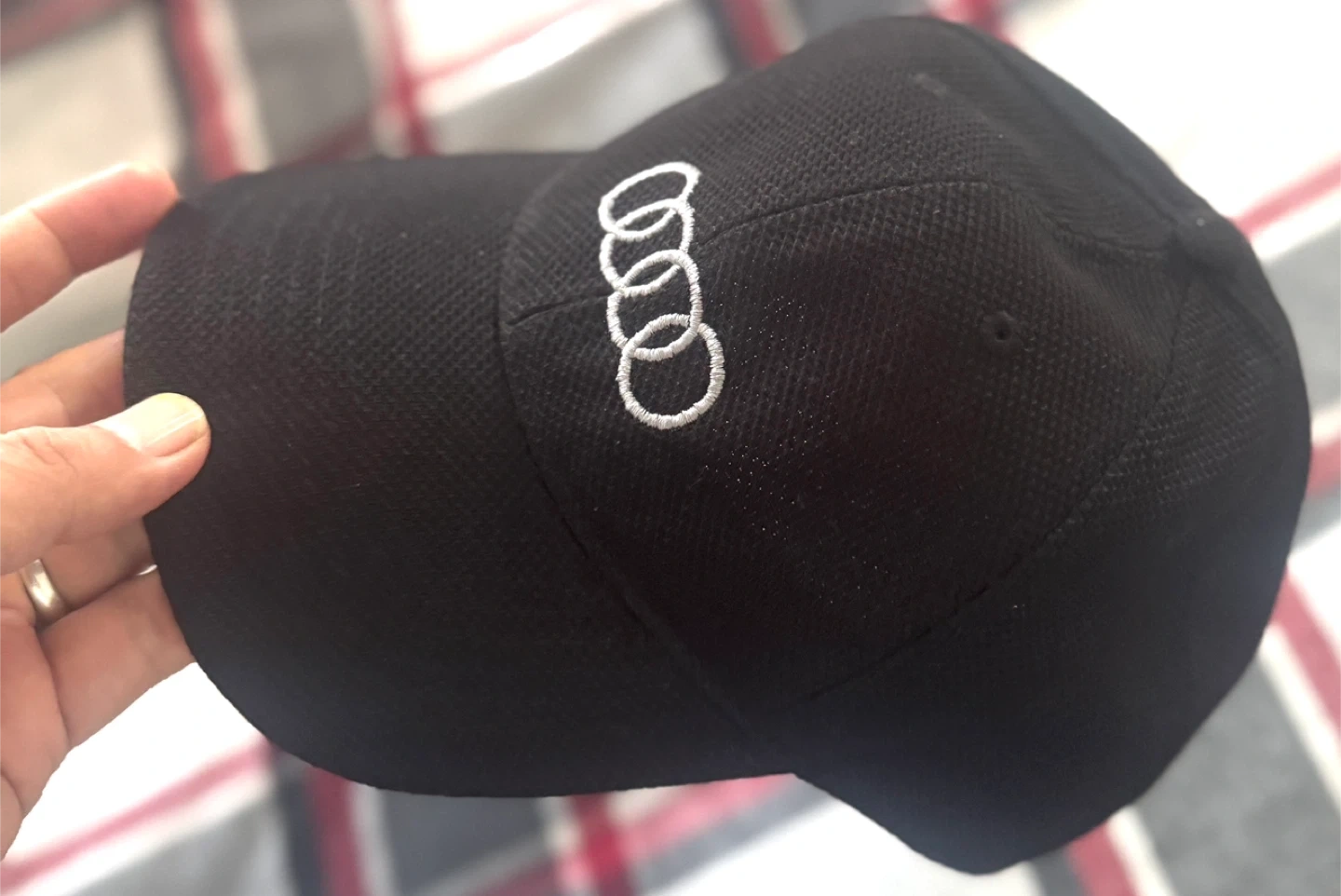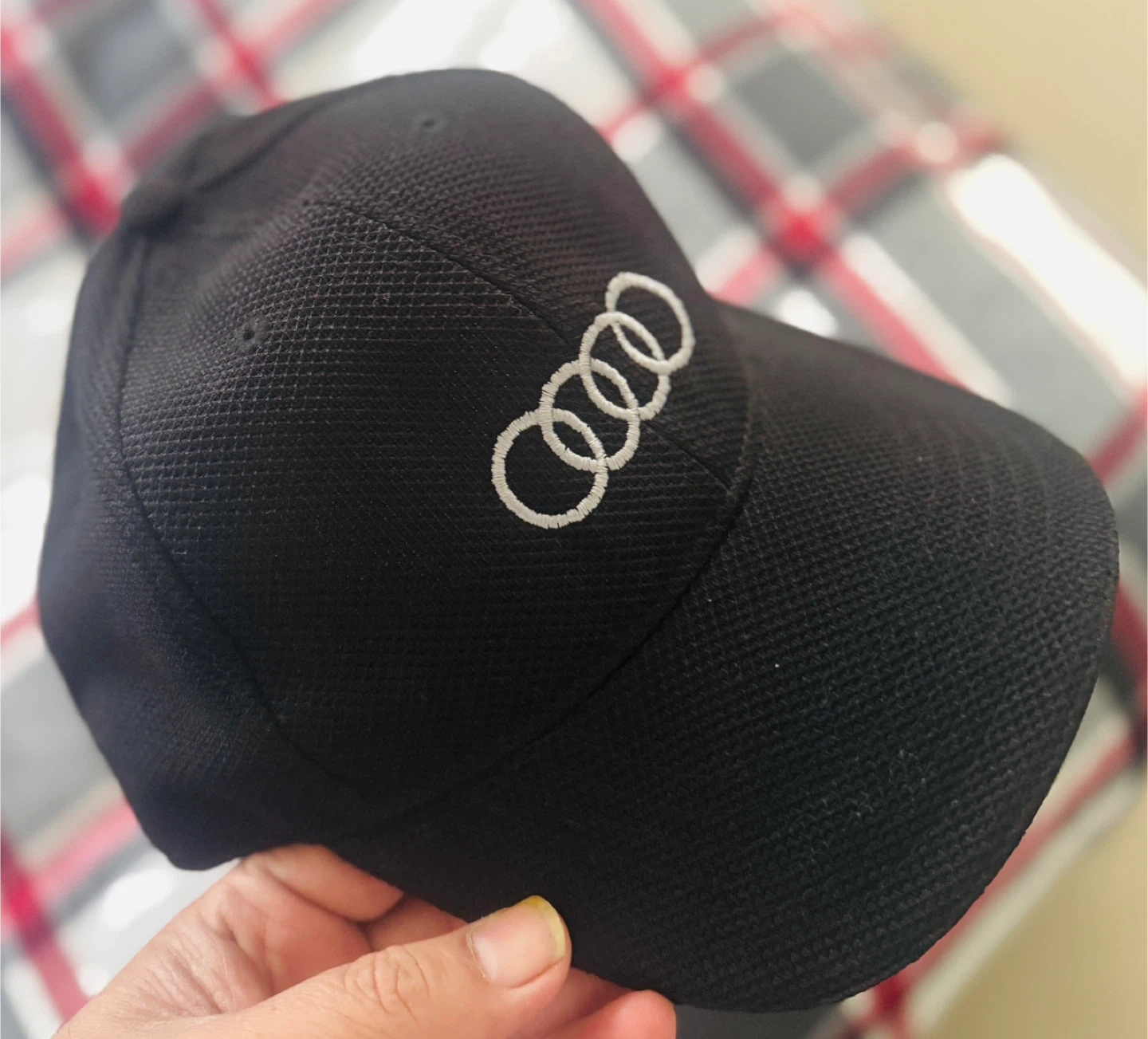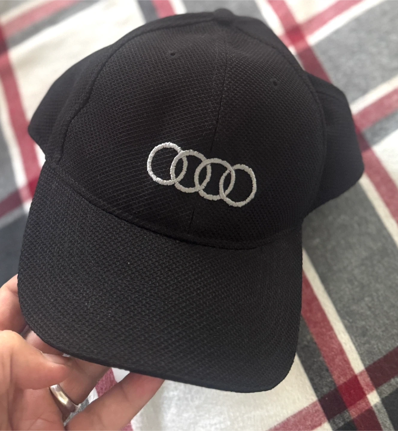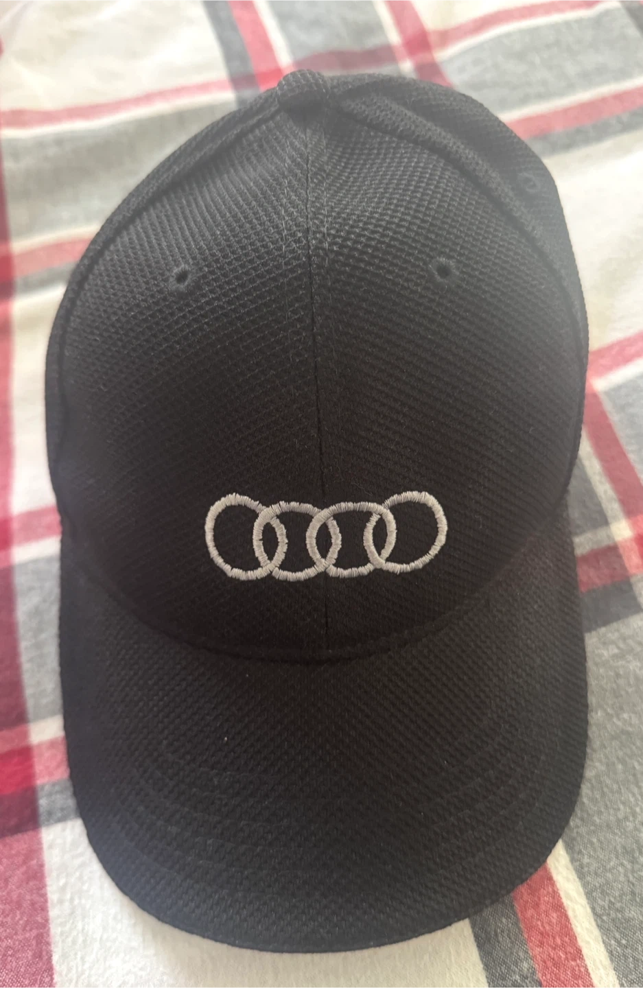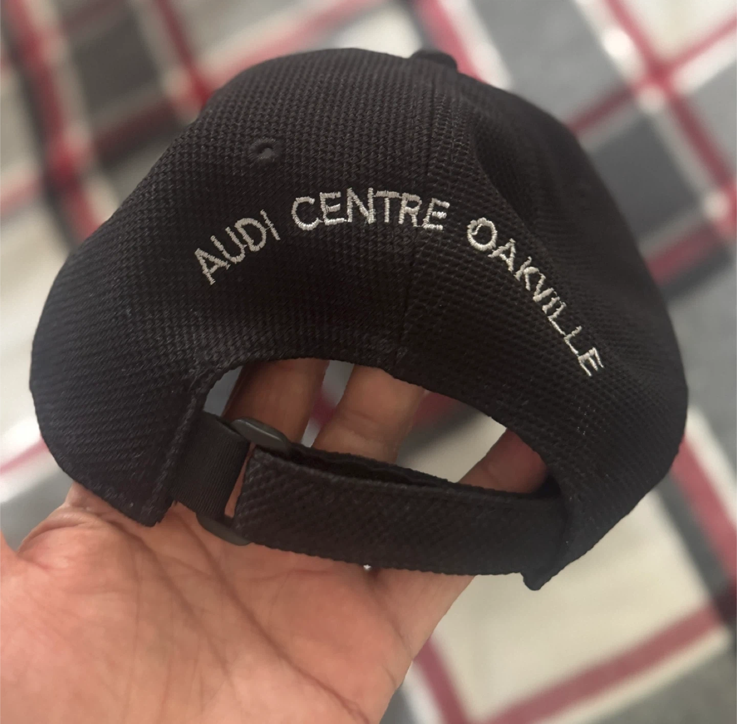 Selling a black cap with the Audi logo embroidered on the front and 'AUDI CENTRE OAKVILLE' embroidered on the back. It's in great condition and ready for a new owner!