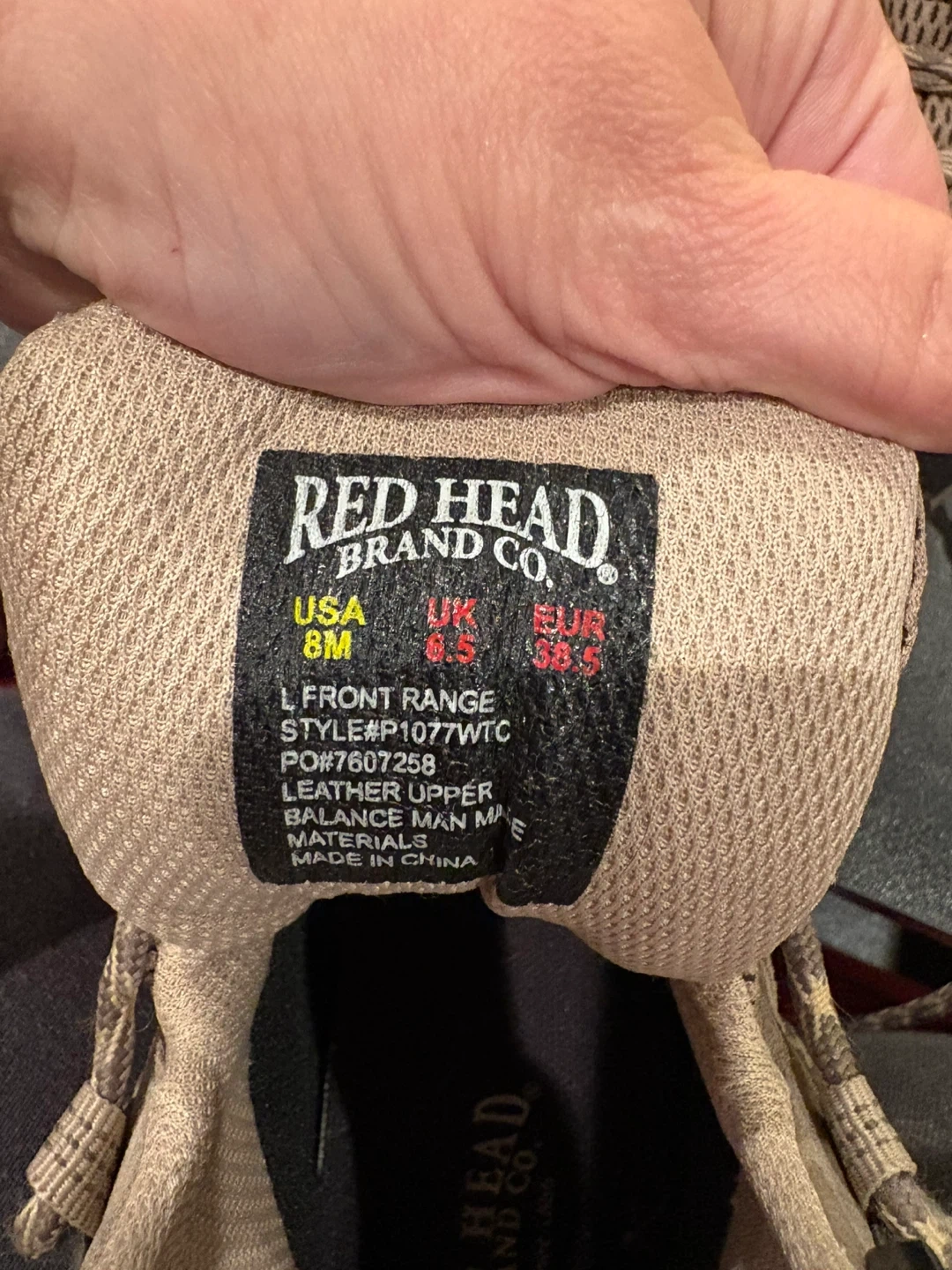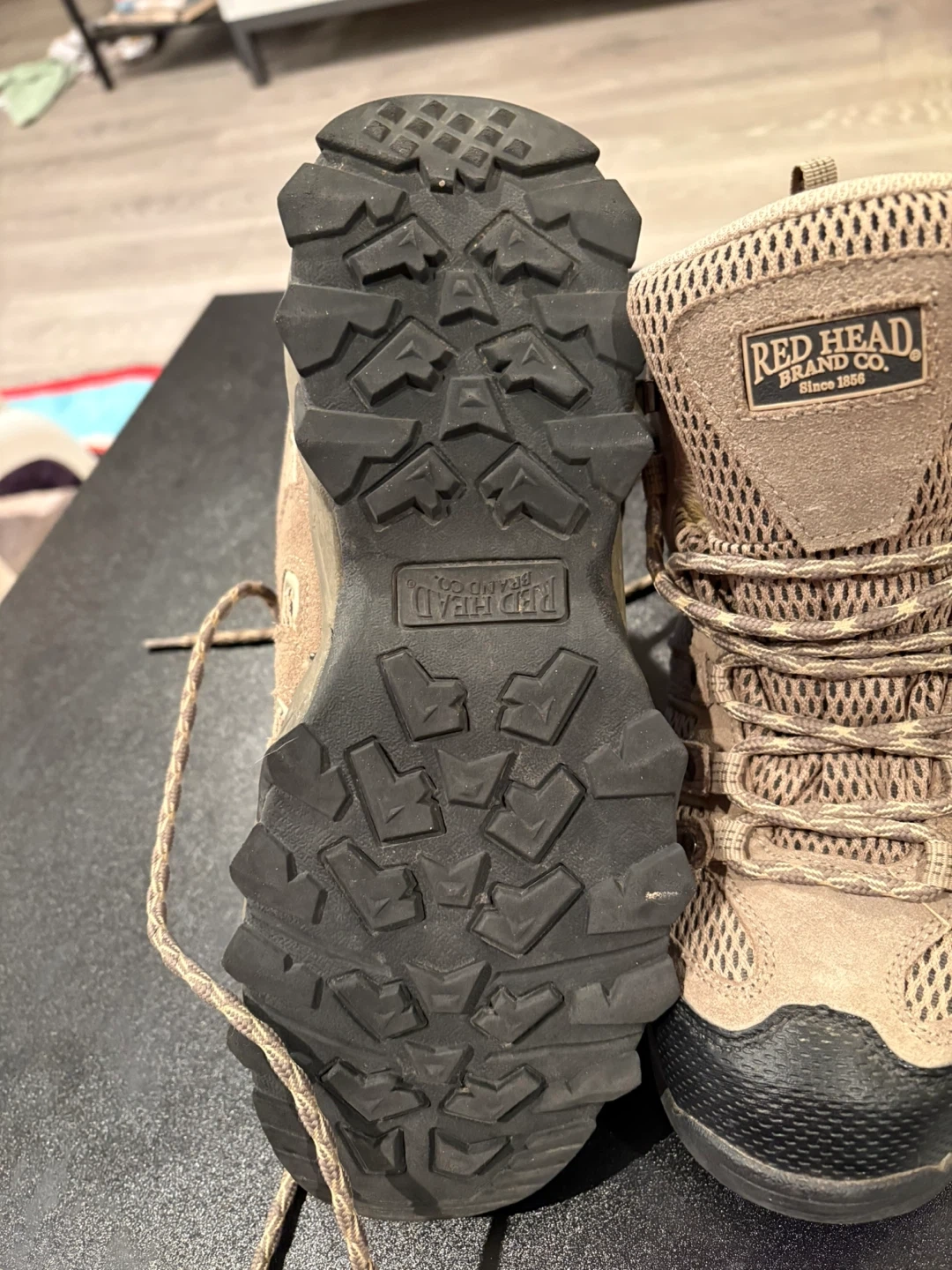 Selling a pair of Red Head Brand Co. hiking boots in size 8M (US). These boots feature a leather upper and a durable man-made sole. They're in excellent condition and ready for your next outdoor adventure!