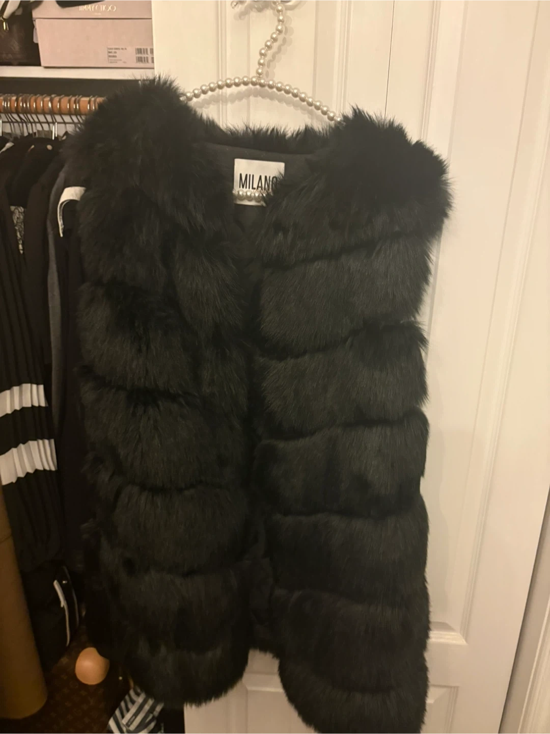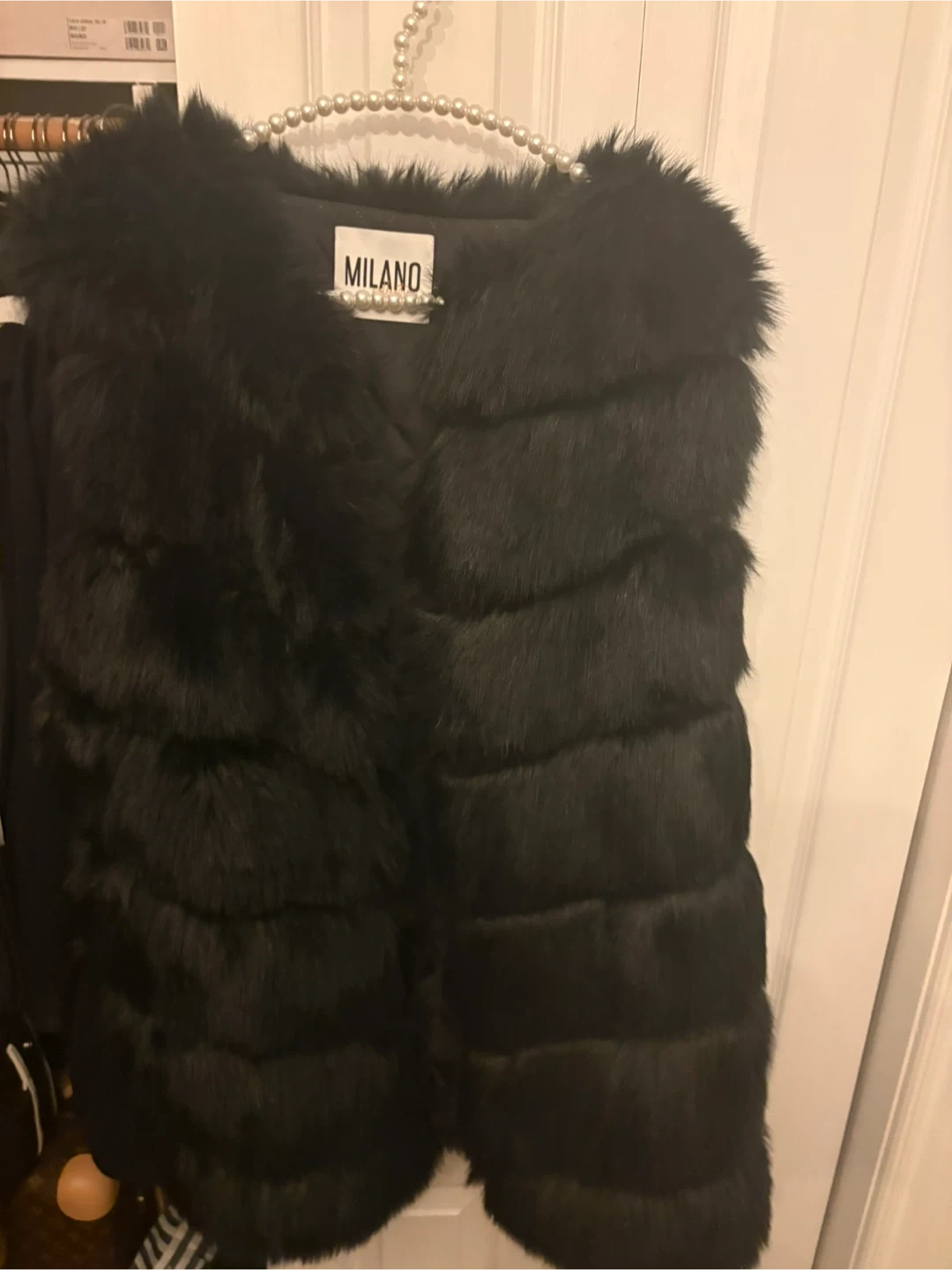 Selling a Milano Collection black fur vest in size XL. It's in great condition , never worn and has a stylish look. Perfect for adding a touch of elegance to any outfit!