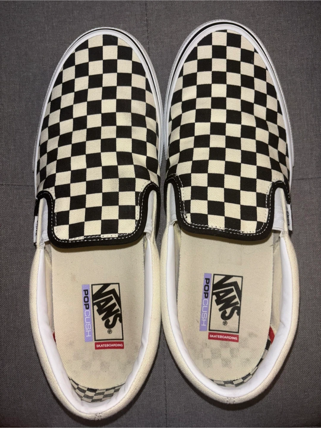 Selling a pair of Vans Slip-On skateboarding shoes in a classic checkerboard pattern! They're in great shape and ready for a new owner. Size 12 men’s