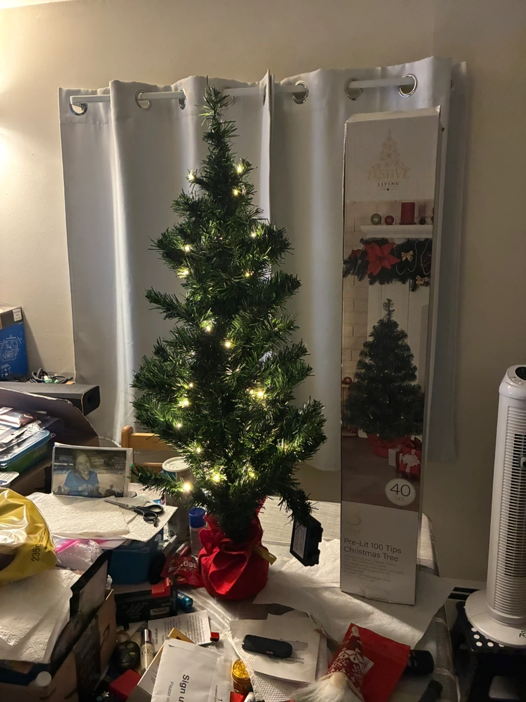 Selling a Festive Living pre-lit Christmas tree with 100 tips! It's a cute little tree perfect for adding some holiday cheer to a small space. It comes with 40 LED lights already installed, so it's super easy to set up and enjoy. The box is included!