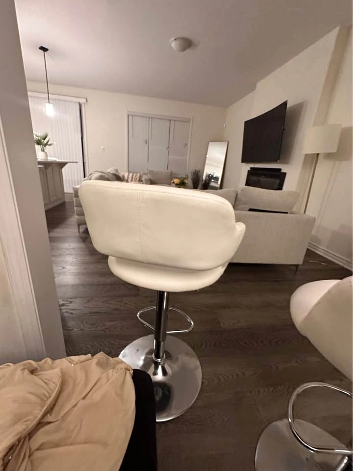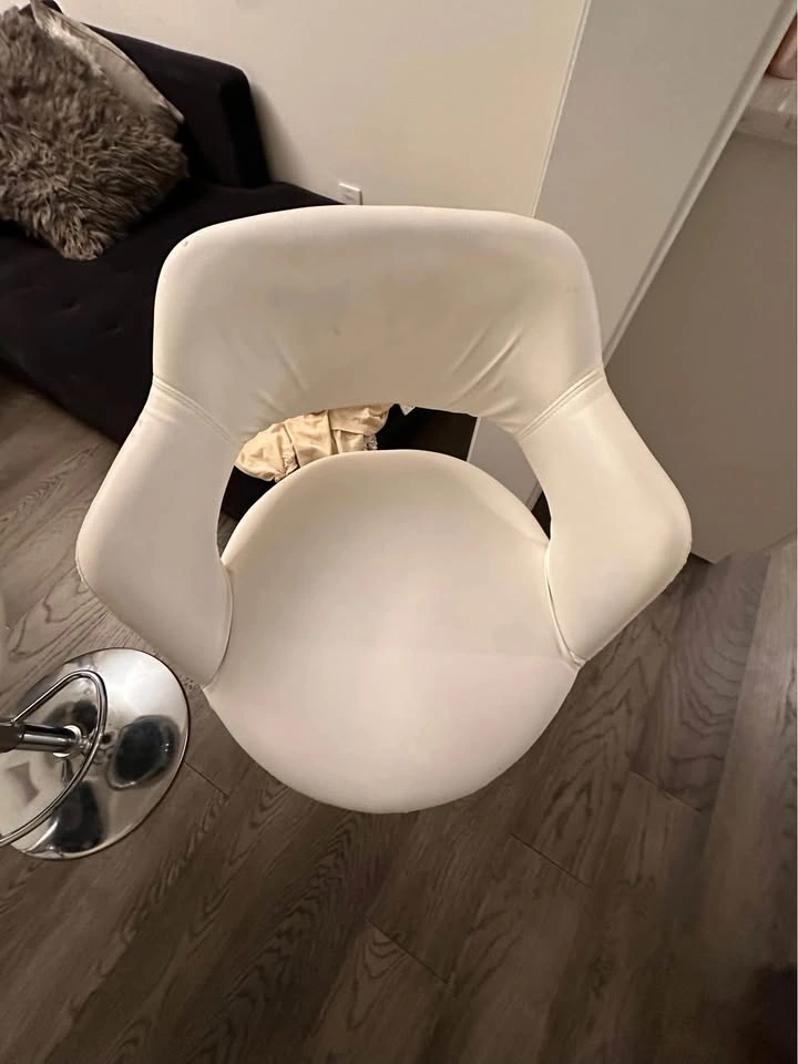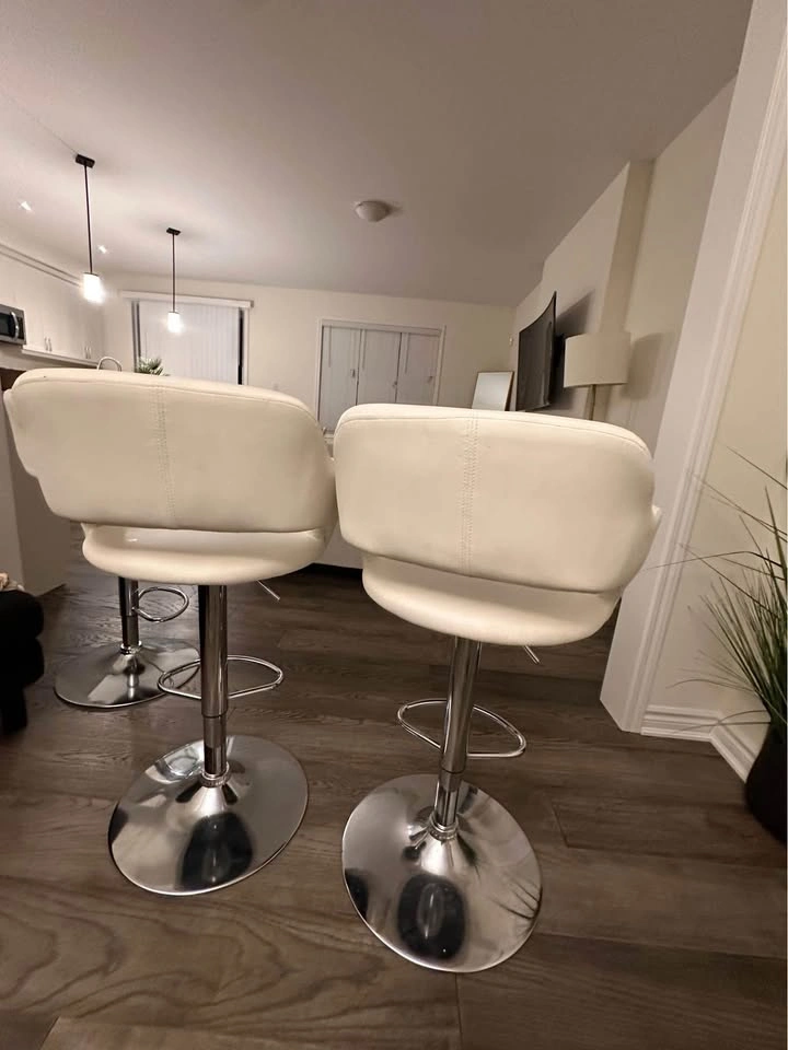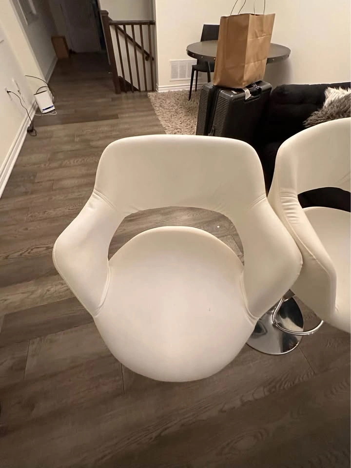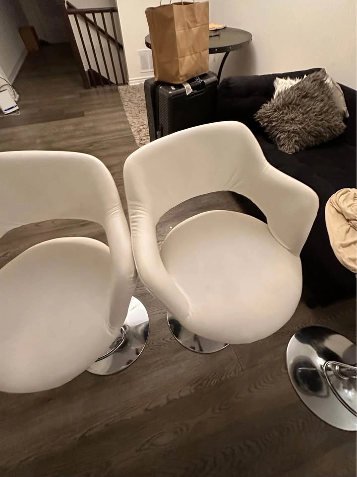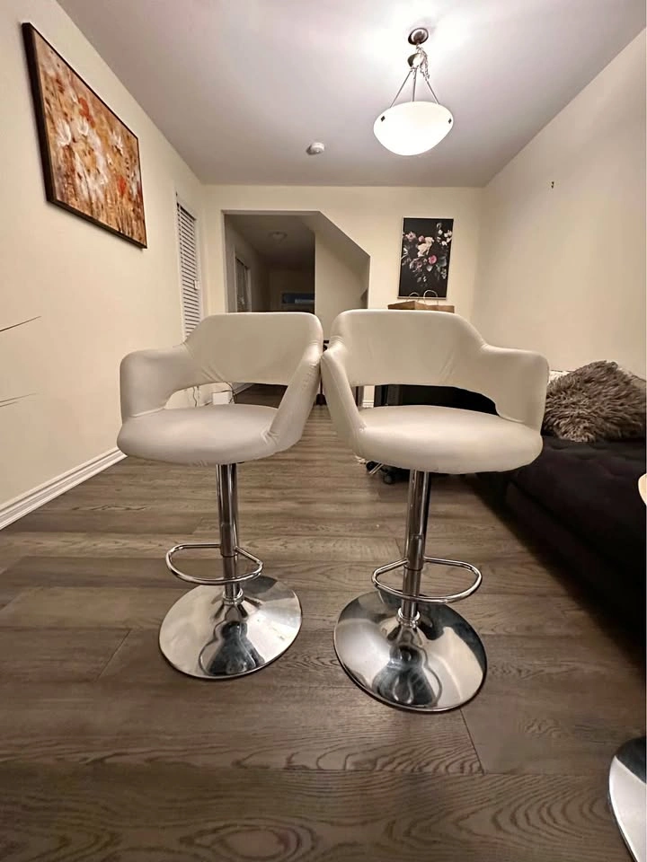 10For sale: Set of 3 white tall adjustable chairs! Perfect for your kitchen or office. All three are adjustable for height and provide great comfort. One chair has a minor scratch, but still in great condition overall. Selling as a set. Message for more details or to pick up!
