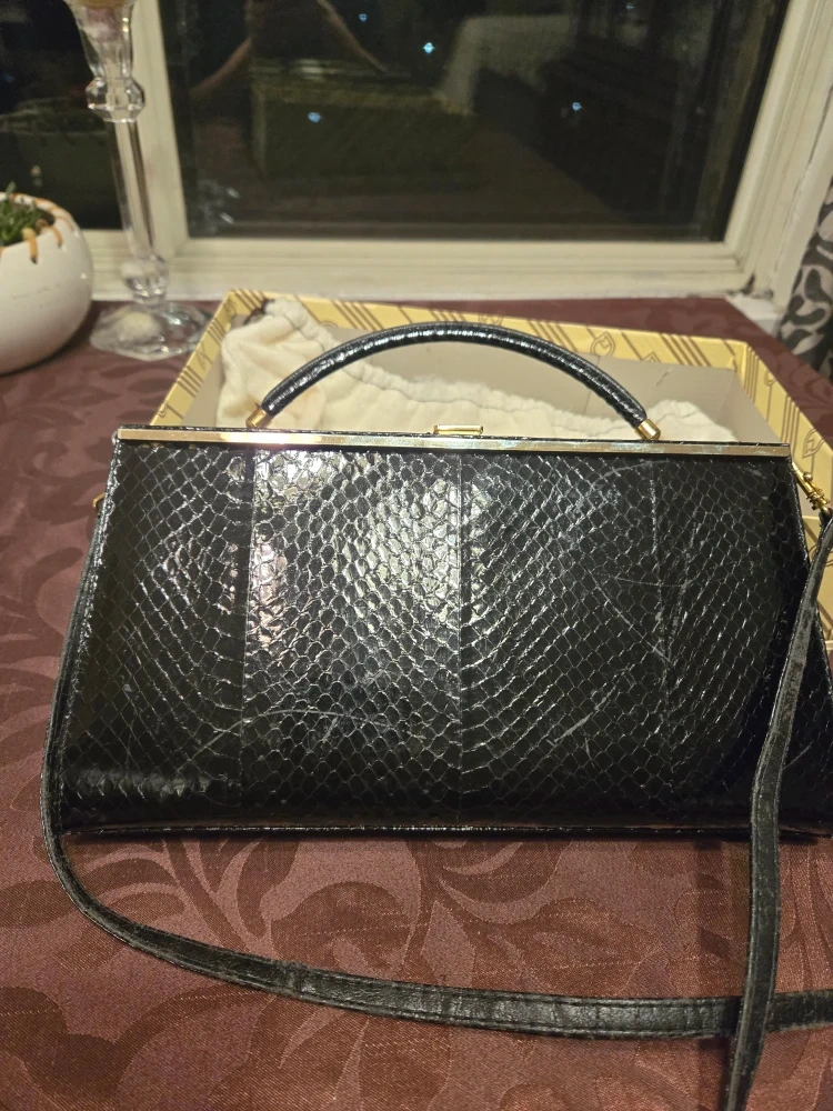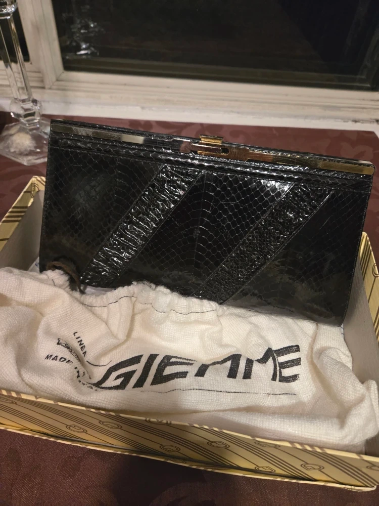 Selling a Giemme handbag in a stylish black snakeskin pattern. It comes with its original box and a dust bag to keep it protected.