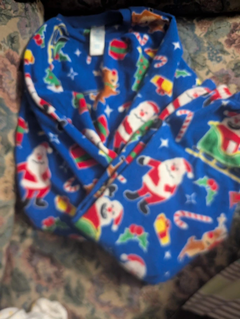 Cozy The Children's Place pajamas in size S/P 5/6. These blue pajamas are made of 100% polyester and feature a fun Christmas pattern. Perfect for keeping your little one warm and festive!