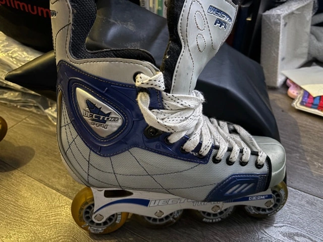 Get ready to roll with these CCM Vector inline skates, perfect for recreational skating or inline hockey! These skates have been barely used and show minimal signs of wear, but are still in good condition for gliding around. The wheels are in great condition and ready to hit the pavement. Barely used only used for a few games of inline hockey and a couple times outdoors. 8.5/10 condition. Originally purchased for $160+ tax. Currently reselling for $110 online and these are in better condition.