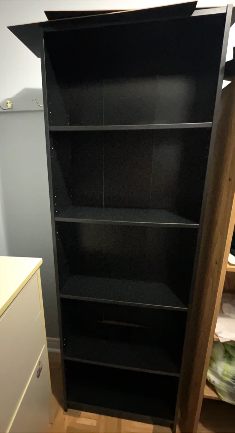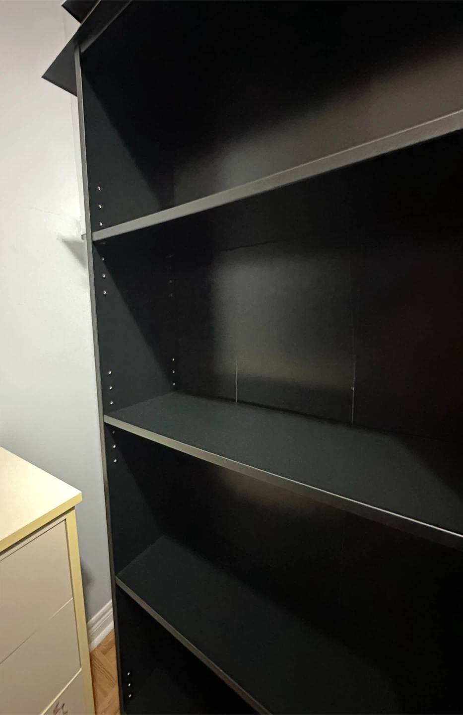 Selling a black IKEA bookcase in great condition! It's perfect for organizing your books or displaying your favourite items. This bookcase is sturdy and easy to assemble, making it a practical addition to any room. Don't miss out on this great deal!