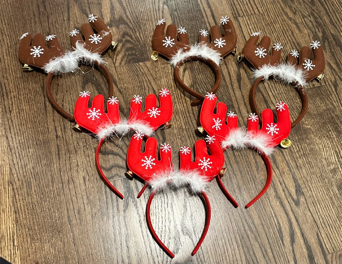 Get ready for the holidays with this set of 6 adorable reindeer antler headbands! Perfect for Christmas parties, family gatherings, or just spreading some festive cheer. There are 3 red and 3 brown headbands with bells.