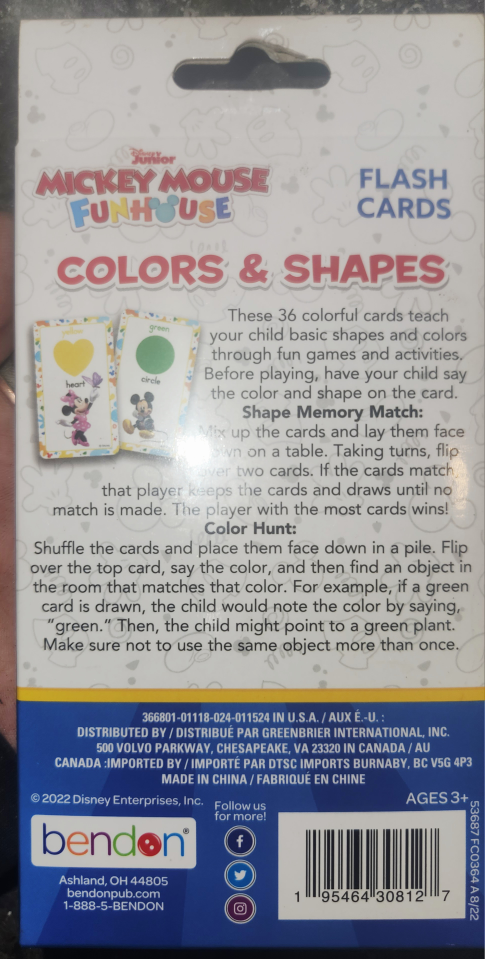 ANYONE A MICKEY MOUSE FAN? MINNIE AND MICKEY MOUSE 36 FLASH CARDS. PICK UP ONLY unless near intersection of Oxford and Gammage Street.