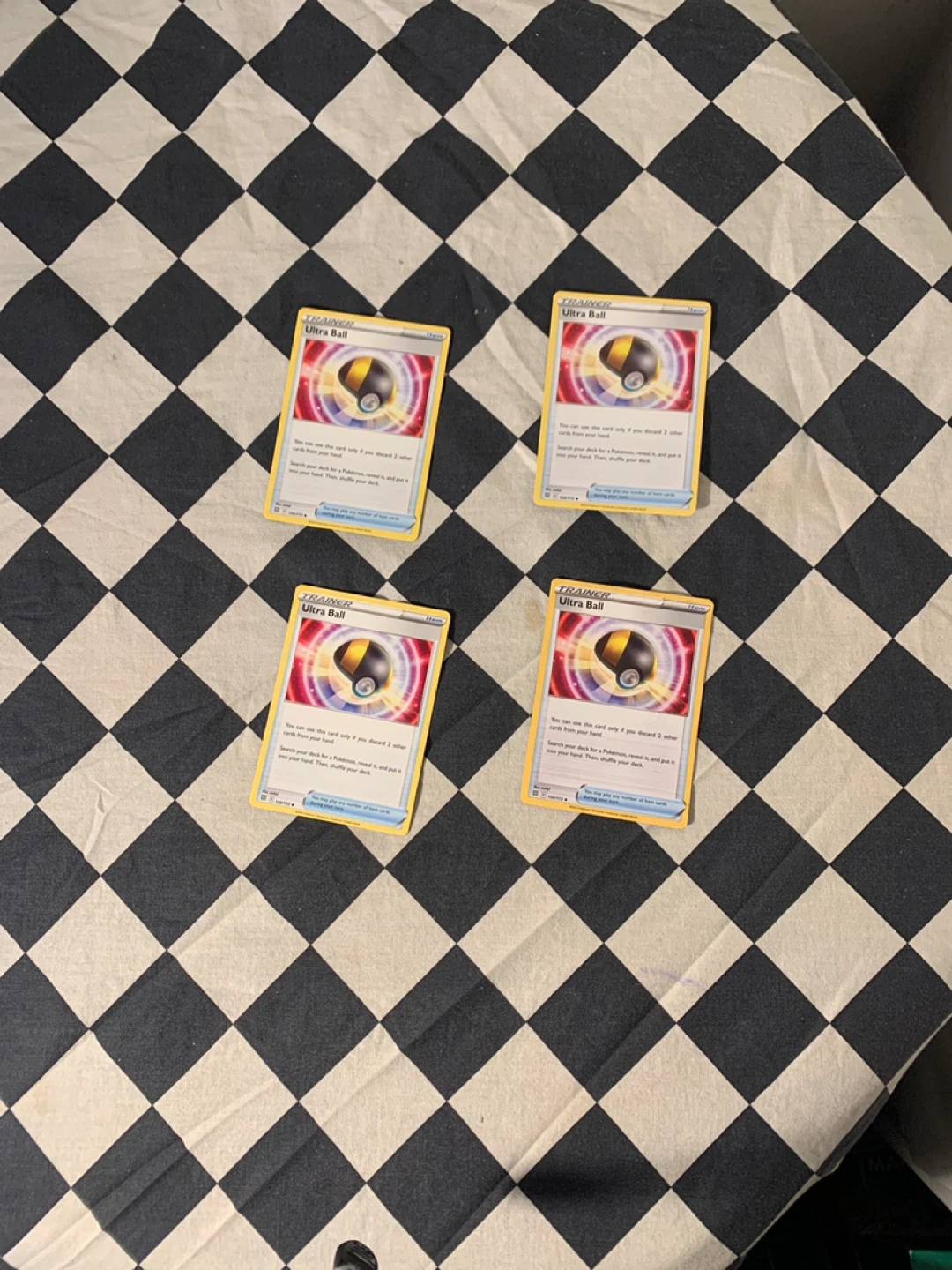 Selling a set of 4 Ultra Ball Trainer cards for the Pokemon Trading Card Game! These cards are in great condition and ready to be added to your deck. They allow you to search your deck for a Pokemon, reveal it, and put it into your hand, then shuffle your deck