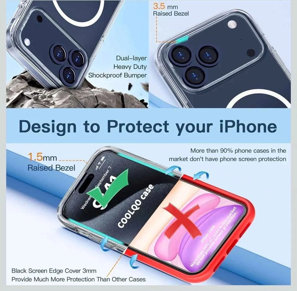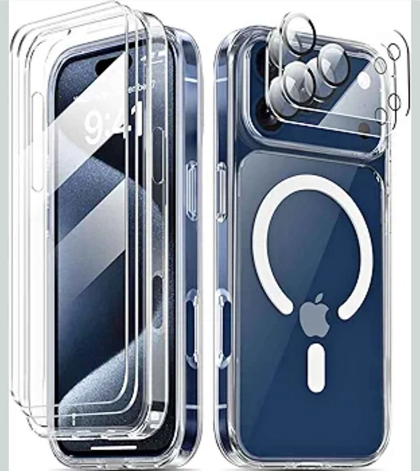 Magnetic for iPhone 17 Pro Case Non-Yellowing [Screen Protector + Camera Lens Protector] Compatible with MagSafe Dual-Layer Military Grade 17 FT Drop Shockproof Protection Phone Cover Clear