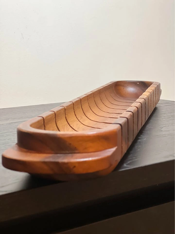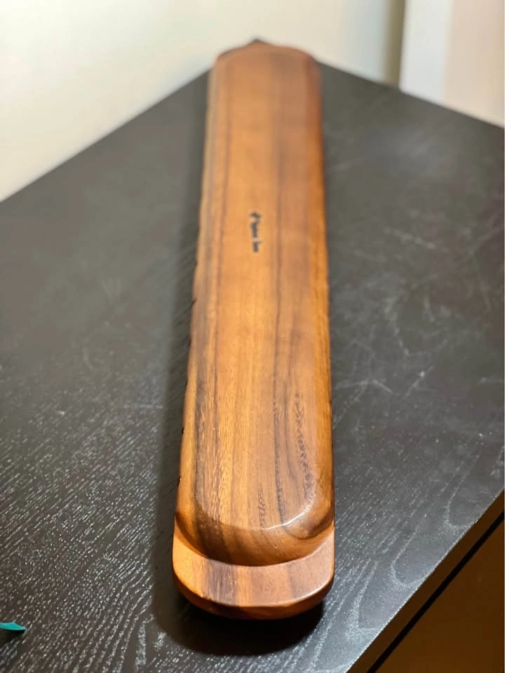 This VAGABOND HOUSE Harvest Wood BAGUETTE French Bread Cutting Board Basket is a beautiful addition to any kitchen. The long baguette shape, measuring 26 inches, is perfect for displaying and slicing bread at dinner parties or special occasions. The cutting board is made of high-quality wood and features a stunning brown color.