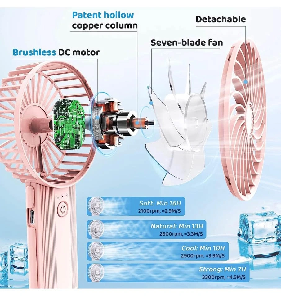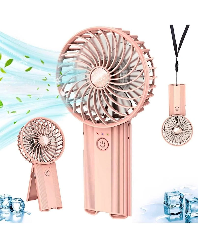 Portable Hand Held Fan - Handheld Personal Fan Rechargeable with 4 Speeds, Super Quiet, 16 Hours of Use - Perfect for Airplane Beach Travel, Office, Gifts for Women - Pink