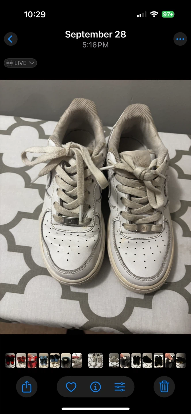 Buy & SellNike Air Force 1 SneakersNike Air Force 1 Sneakers$28Selling a pair of Nike Air Force 1 sneakers. They show some signs of wear, but still have lots of life left in them!ConditionGoodAge9 years and older0 chats·0 favorites·2 viewsSELLERDanielleWoodbridge100 reviewsWHERE TO MEETMaple