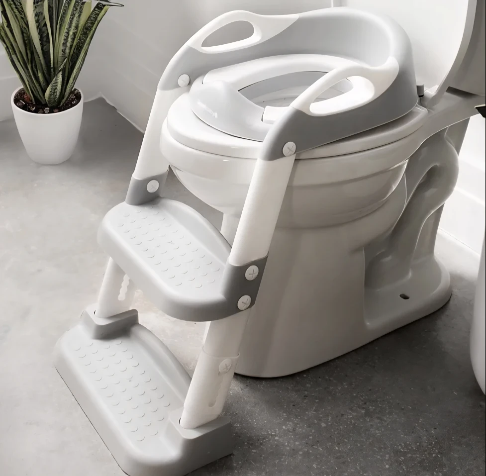 ADJUSTABLE HEIGHT makes this potty seat with ladder compatible with almost any toilet. Design fits most round & elongated seats.