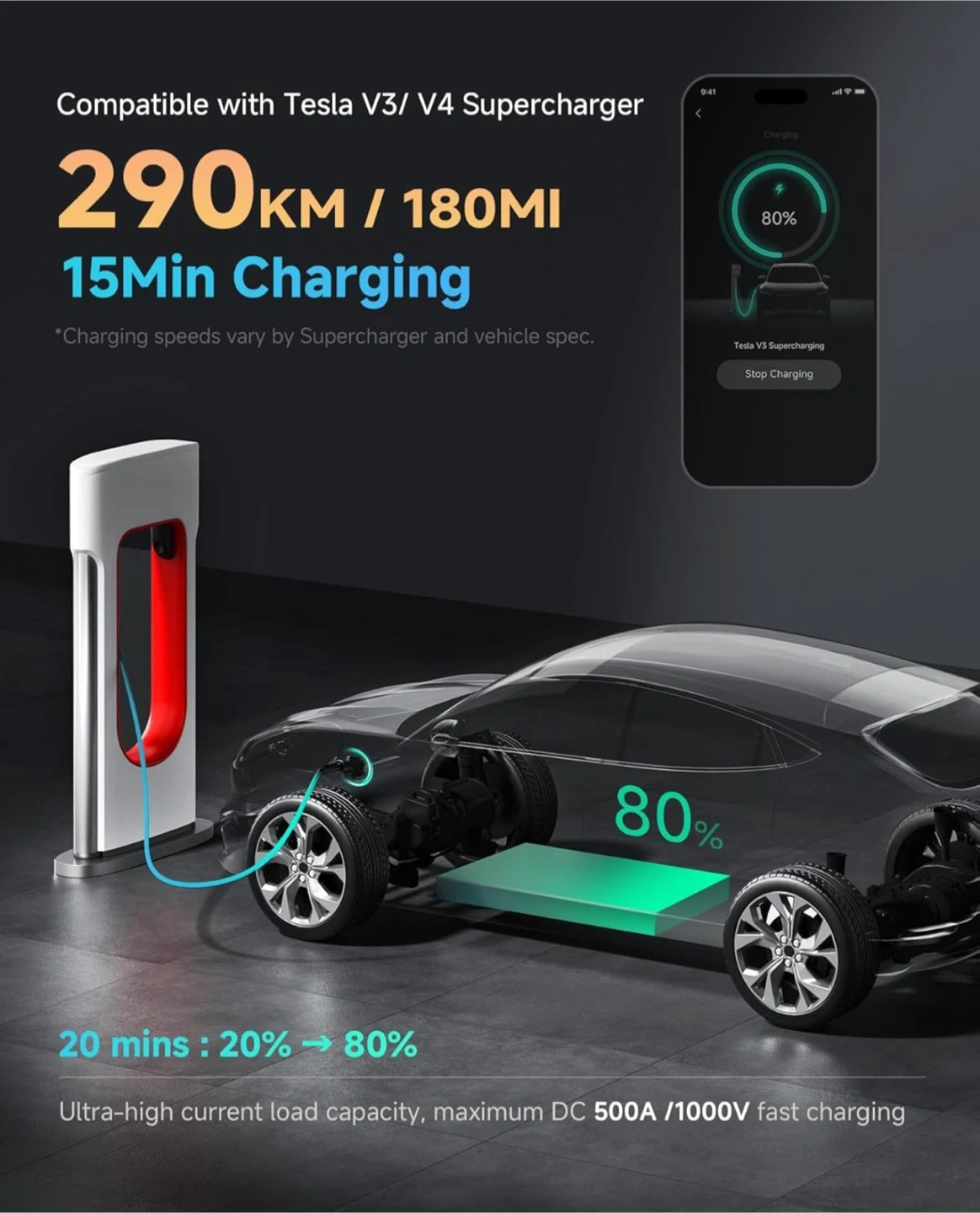 EV Charging Adapter for Tesla Supercharger V3/V4