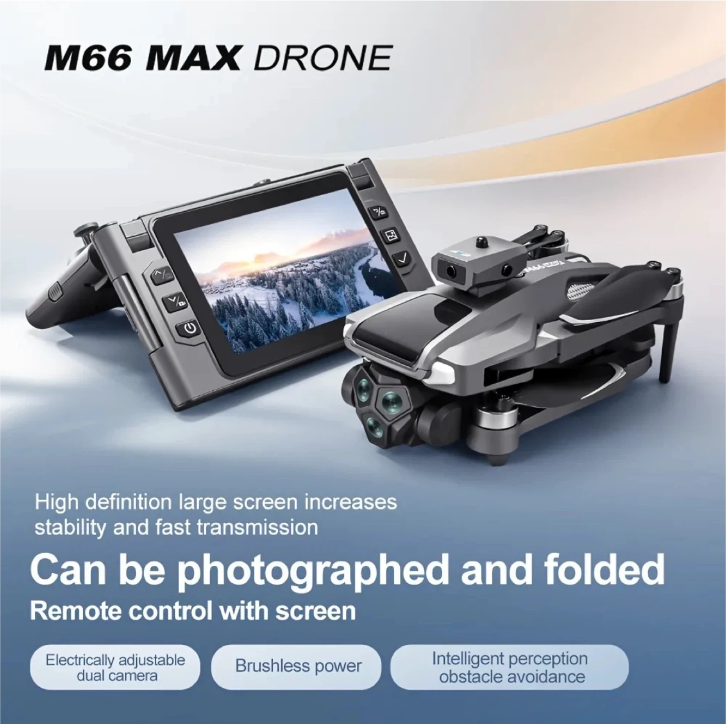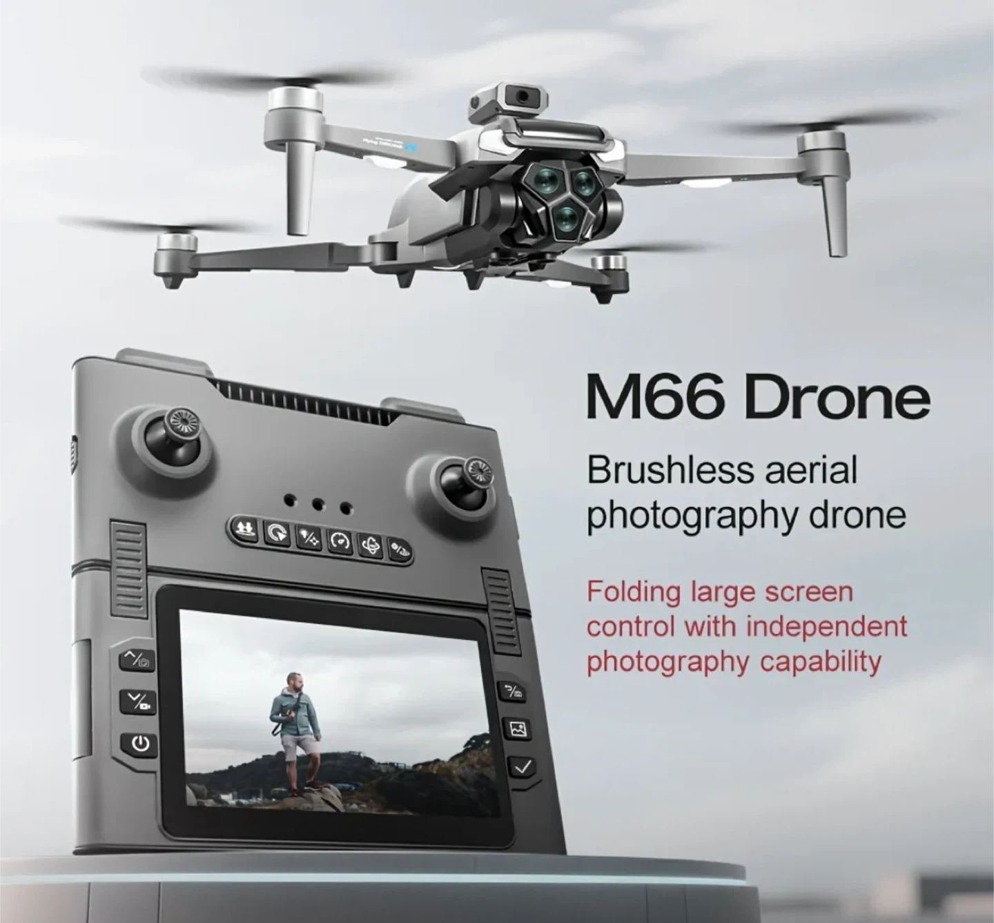 Selling an M66 Drone, perfect for aerial photography! It features a folding design with a large screen control for independent photography. The remote control is equipped with a camera and can be used separately as a camera. It also has intelligent obstacle avoidance and sensitive perception. Get started in seconds with its optical flow visual hover!