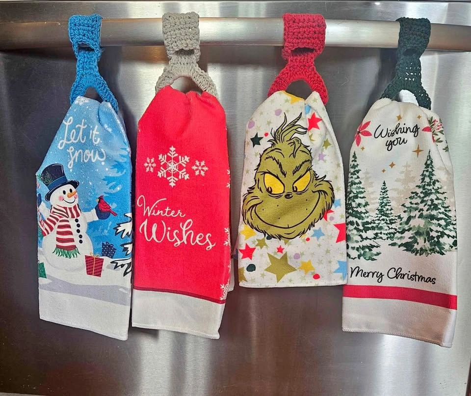 These stove or fridge hanging towels come with interchangeable toppers, so you can easily swap out your towel design when the season changes — no need to buy new toppers each time!