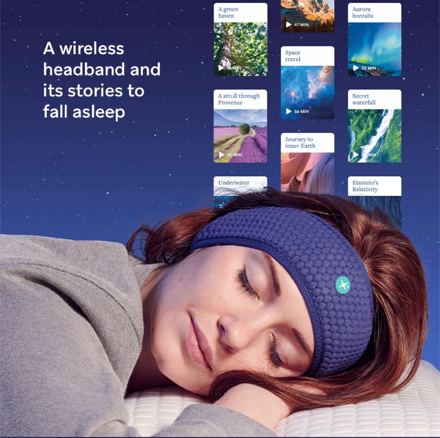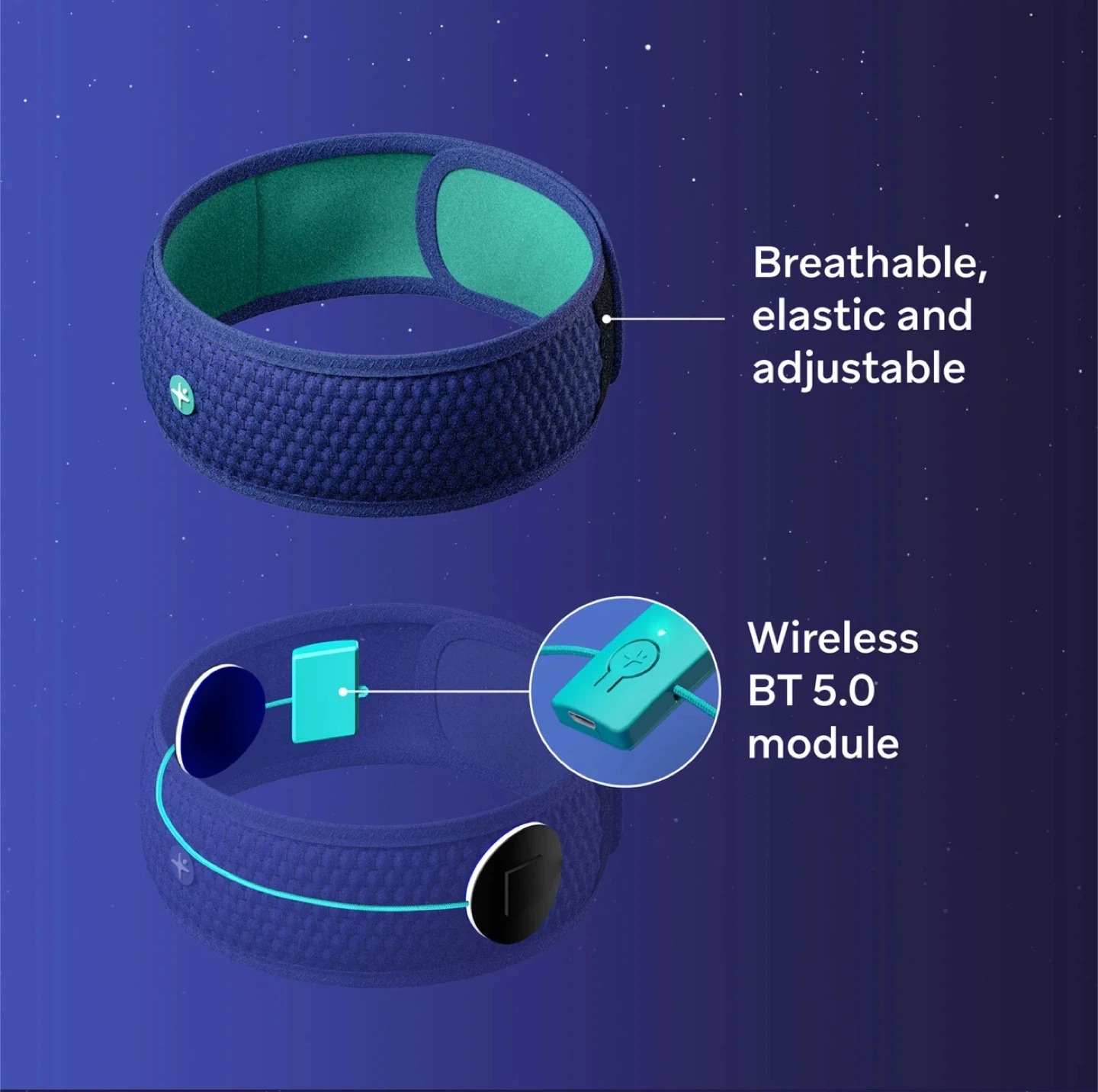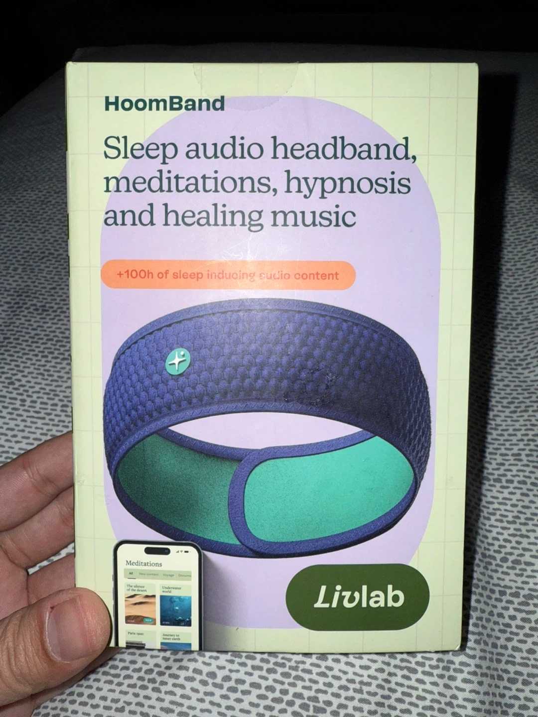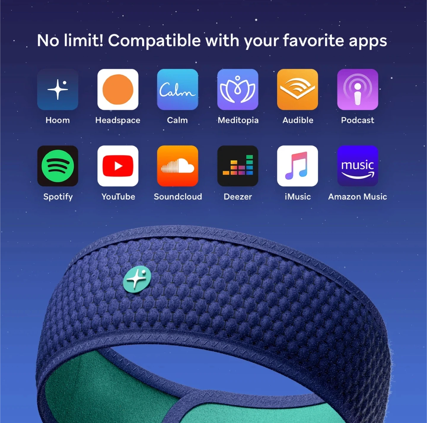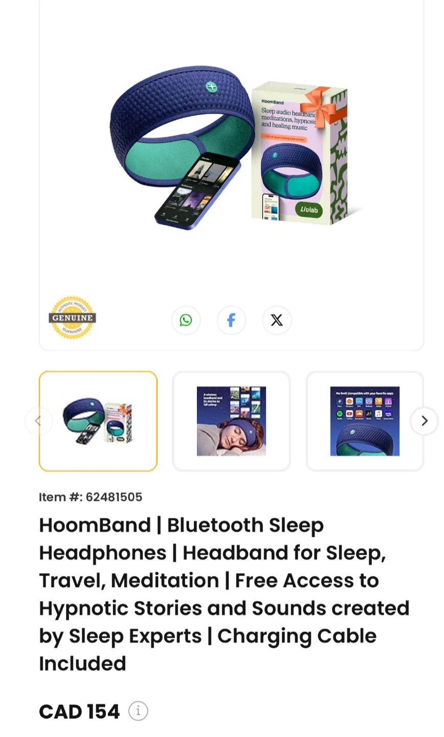 This is a HoomBand wireless sleep headband. It's designed to be breathable, elastic, and adjustable for a comfy fit while you drift off to sleep. Compatible with your favourite apps for sleep and relaxation like Headspace, Calm, Spotify, and more! It features a wireless BT 5.0 module so you can enjoy hypnotic stories and ambient loops to block out noise, available offline