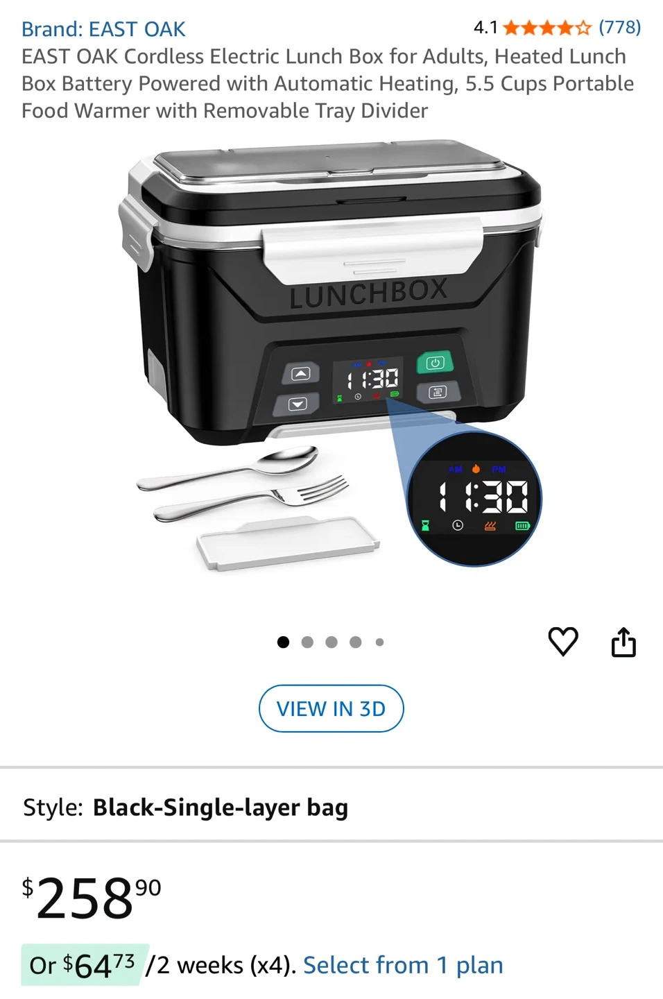 Keep your meals warm on the go with this EAST OAK cordless electric lunch box! It features a rechargeable 10,000mAh battery and a 5.5 cups capacity. Program it for zero-waiting hot meals. Originally bought for $258.90