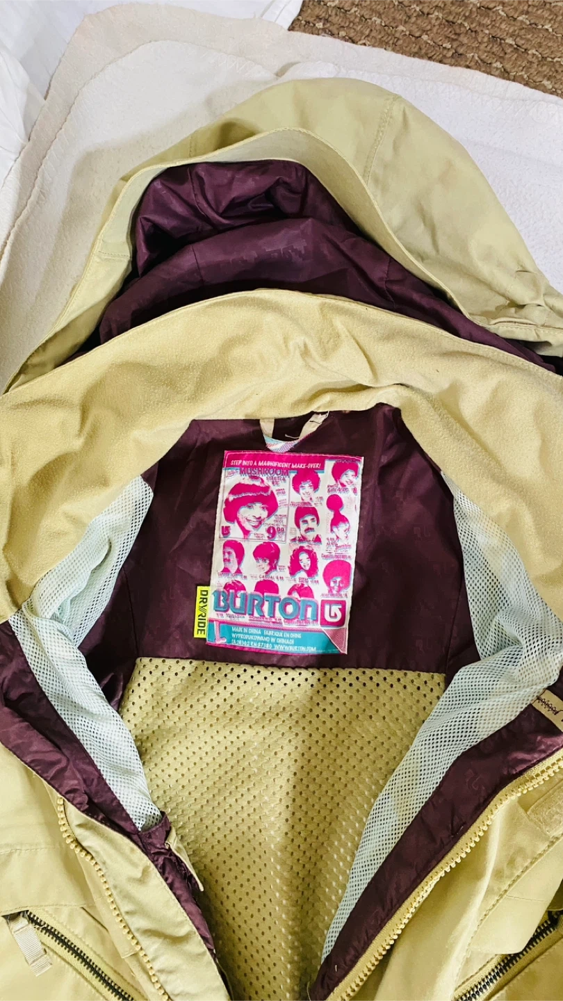 Here's a Burton snowboard jacket in great condition! It's perfect for hitting the slopes this winter. The jacket features a hood and several pockets for storage