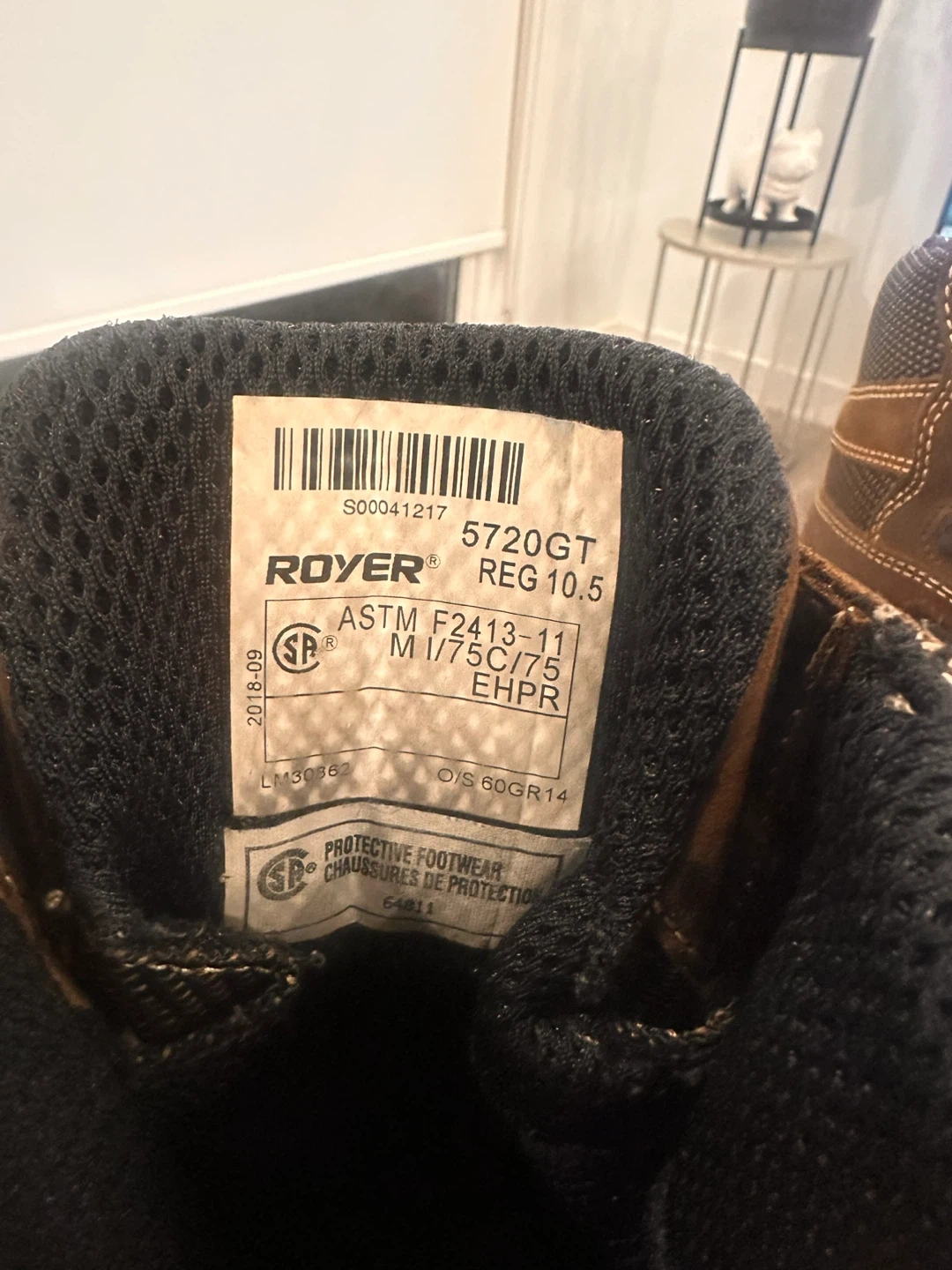 Selling a pair of Royer work boots in great condition! They are a size 10.5 and feature a durable brown leather exterior. These boots are metal-free and meet ASTM F2413-11 M I/75C/75 EHPR standards for protective footwear