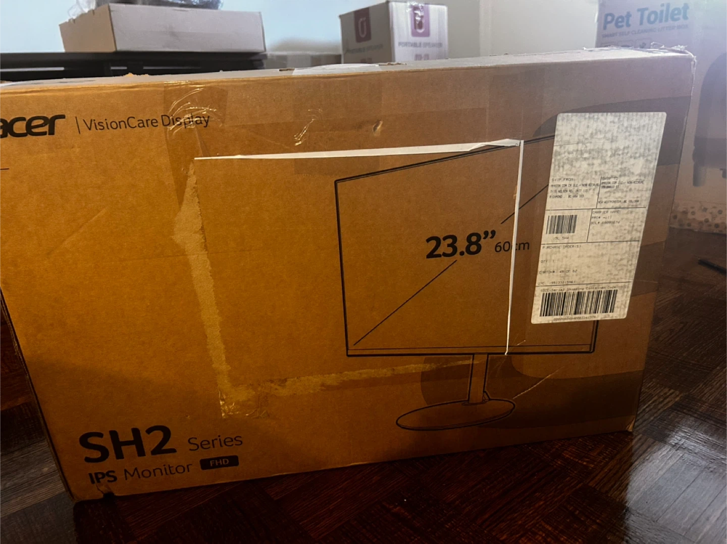 Selling an Acer SH2 Series IPS monitor, perfect for home or office use! It's a 23.8-inch display that delivers clear visuals with its Full HD 1920x1080 resolution. The monitor also features a 120Hz refresh rate for smooth motion and wide viewing angles. Comes with HDMI and VGA ports. Box included!