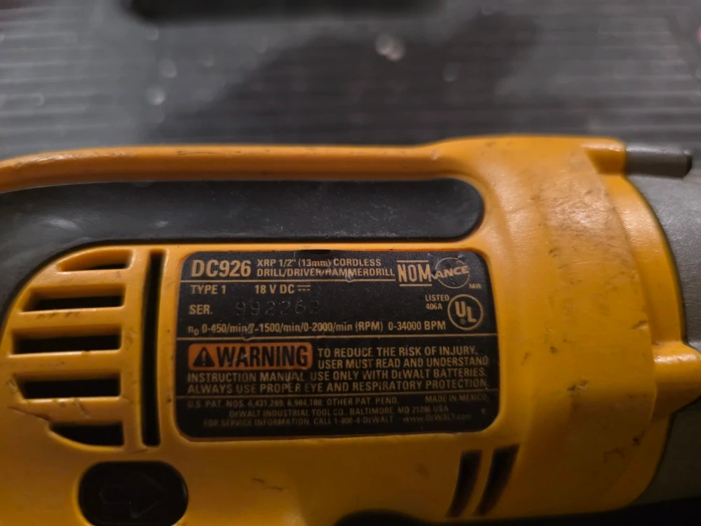 Selling a DeWalt DC926 18V cordless hammer drill. It's in good working condition and ready for your next project! It's a durable and reliable tool that's perfect for a variety of drilling and hammering tasks. At this price its just for the tool but if you text me I can change the listing to include a battery and charger.