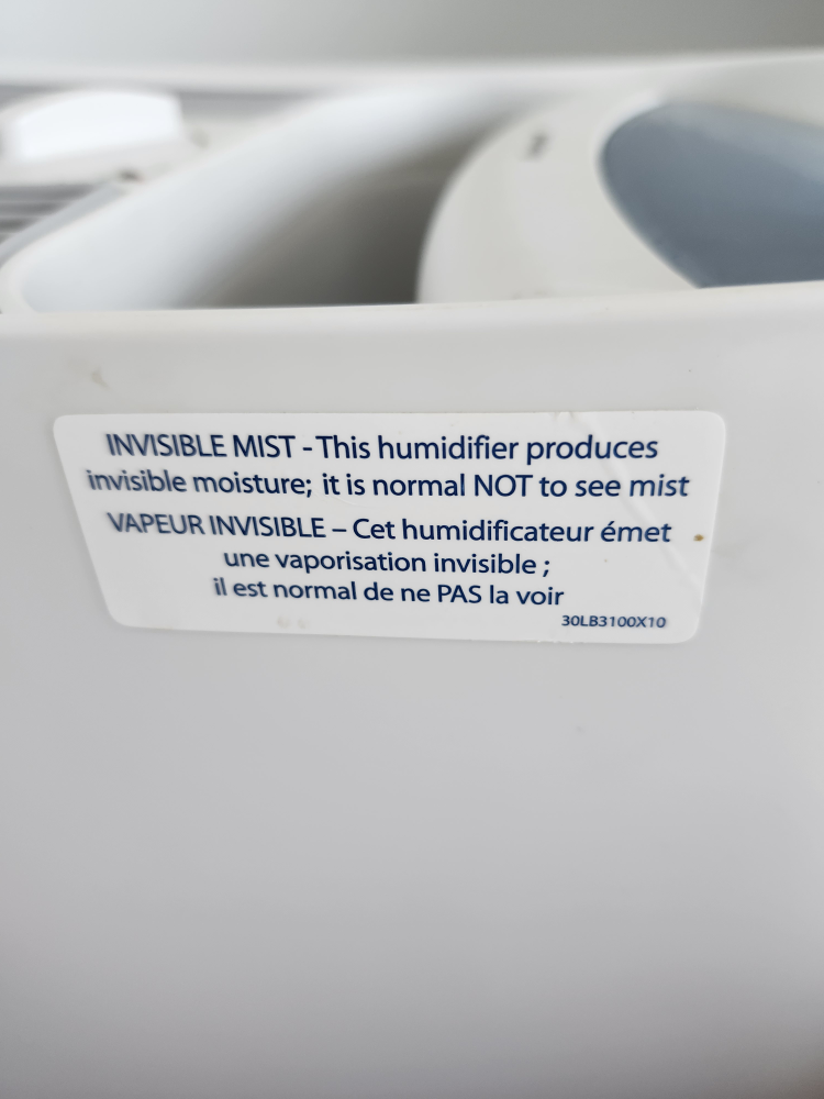 Selling a Honeywell Germ Free Humidifier. It produces invisible moisture, so it's normal not to see mist. Great for keeping the air comfortable!