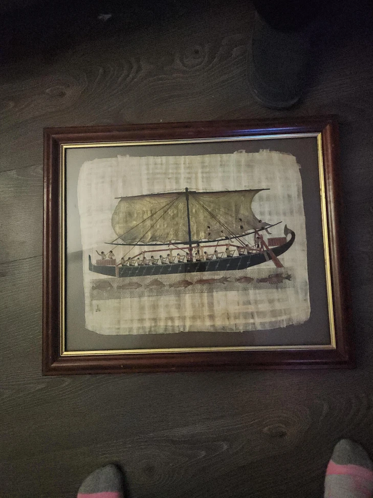 Buy & SellFramed Egyptian Papyrus Boat PaintingFramed Egyptian Papyrus Boat Painting$36Framed painting on papyrus depicting an ancient Egyptian boat. The frame is a dark wood colour. A nice piece of art!0 chats·0 favorites·7 viewsSELLER949347Downtown Barrie100 reviewsWHERE TO MEETCheck Location