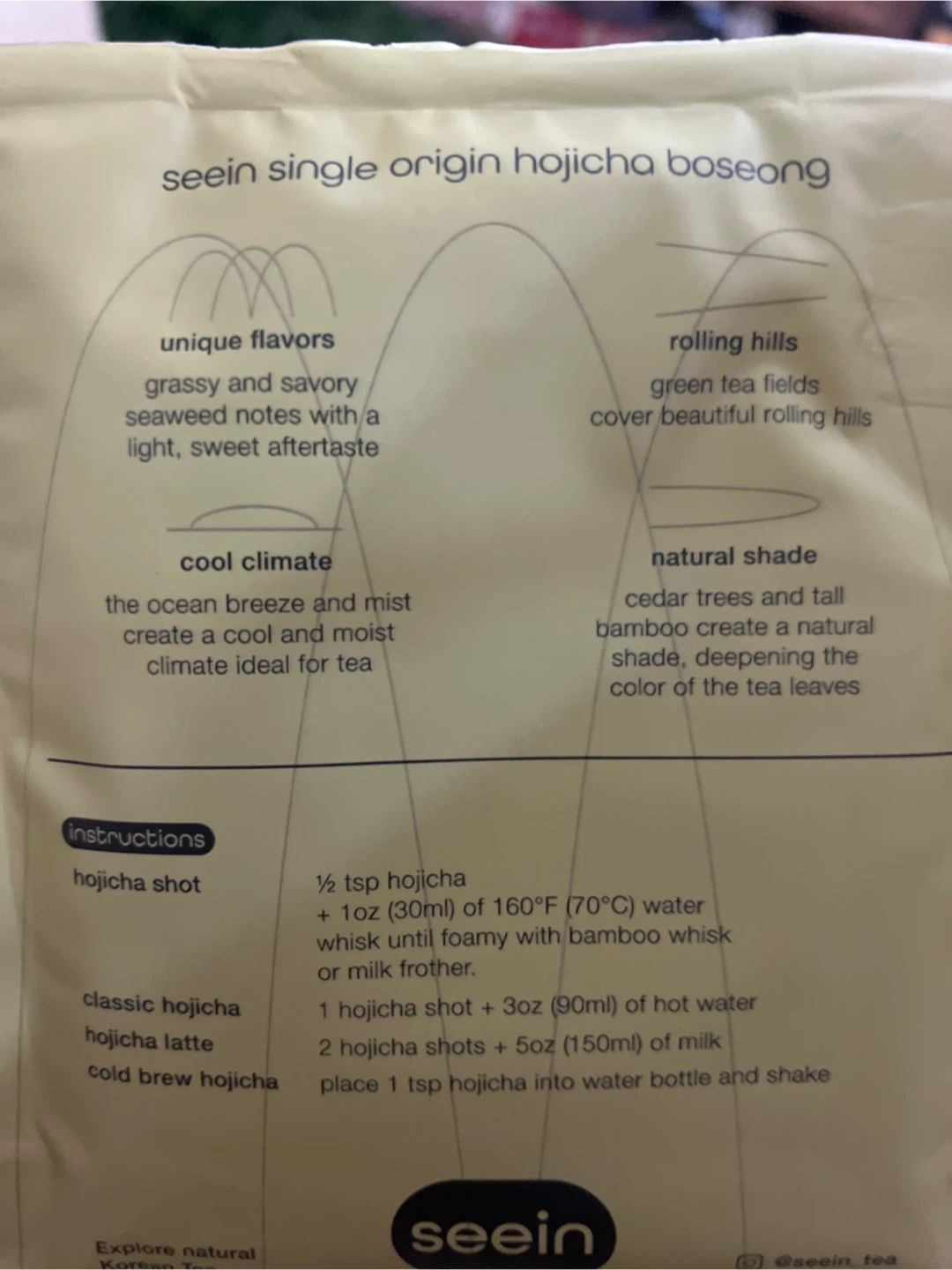 Selling a bag of Seein Hojicha Powder, Boseong single origin. It's a roasted green tea powder from Boseong, with a flavour profile of roasty, chocolate, and toffee. Net weight is 100g / 3.5 oz. Perfect for making hojicha shots, lattes, or cold brew!