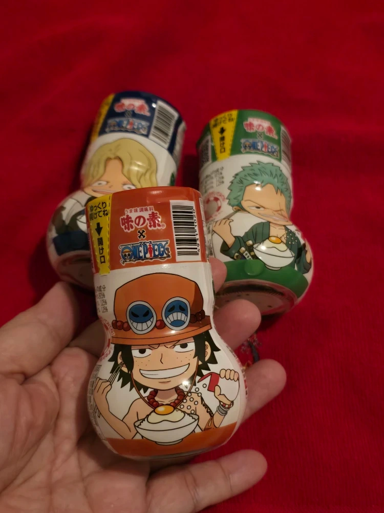 Here are three Ajinomoto seasoning shakers featuring One Piece characters! They're new/ unopened and ready to add some flavour to your dishes.
