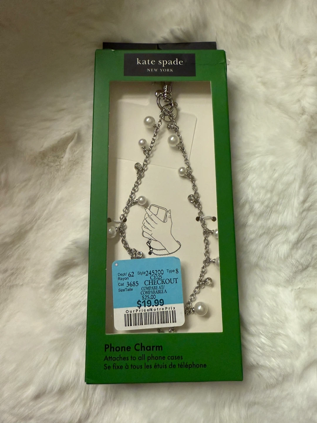Selling a brand new Kate Spade phone charm! It's still in its original packaging. This phone charm attaches to all phone cases and features a sleek, lightweight design. Originally bought for $19.99.