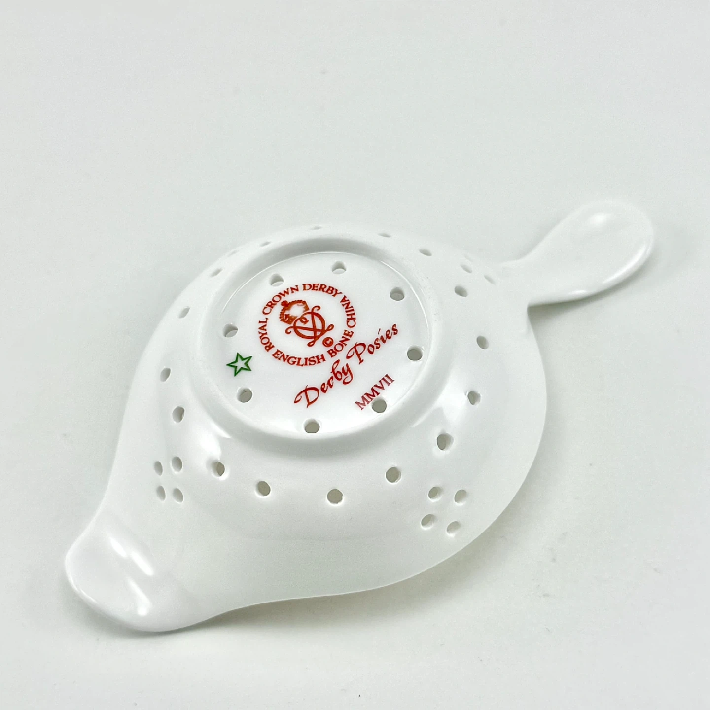 Royal Crown Derby fine bone china tea leaf strainer. No chips, cracks or crazing— in like-new condition