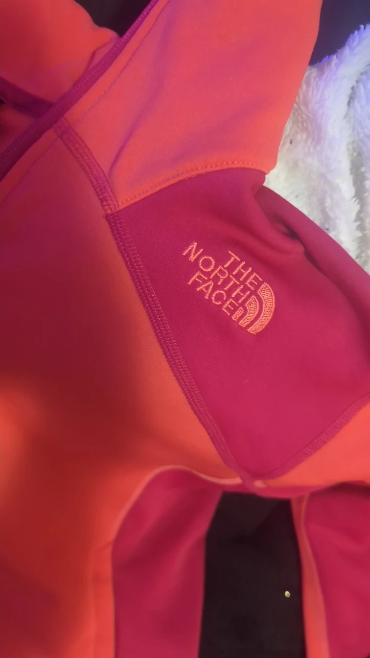 Selling a The North Face jacket in women's size XL/TG. It's a vibrant combination of pink and orange. Perfect for staying warm and stylish! Price can be discussed and lowered