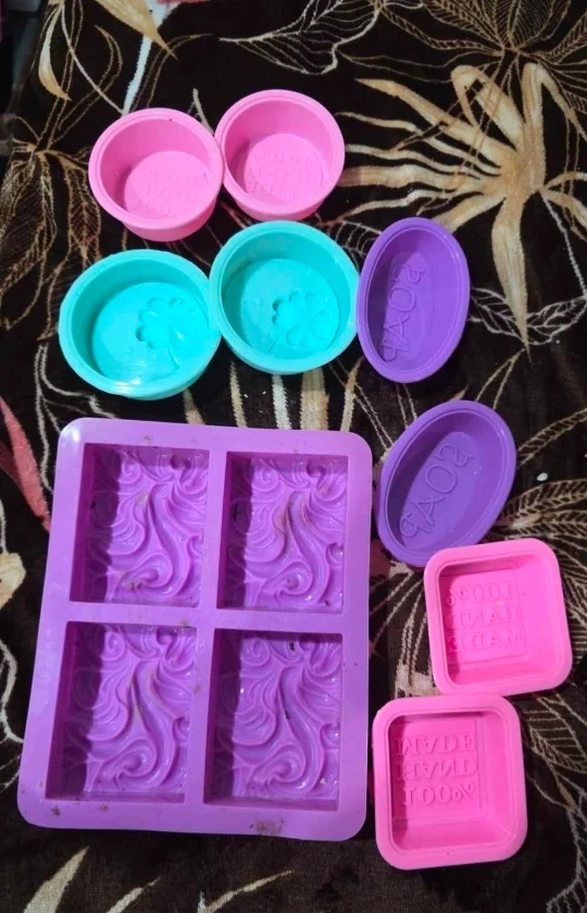 Glass jars , plastic bottles with droppers, paper good quality bags Also 12 soap molds (used)
