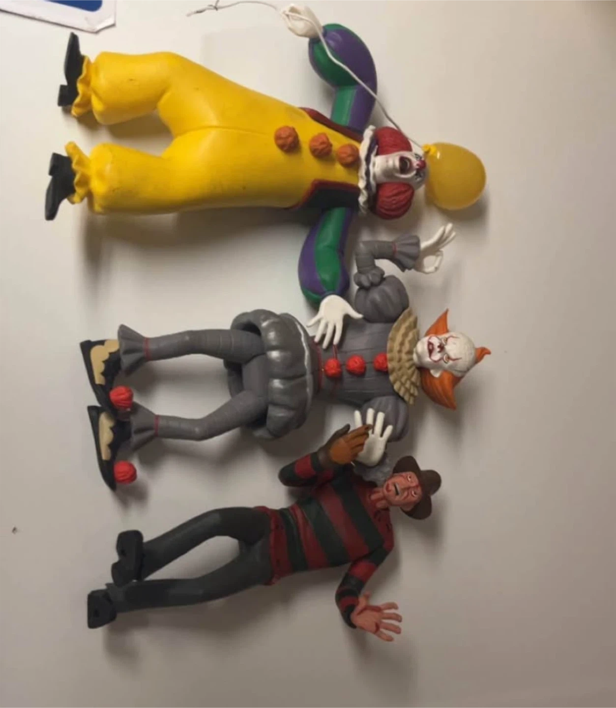 Selling a set of horror movie character figures. Includes Pennywise from IT and Freddy Krueger from A Nightmare on Elm Street. Great for any horror fan!