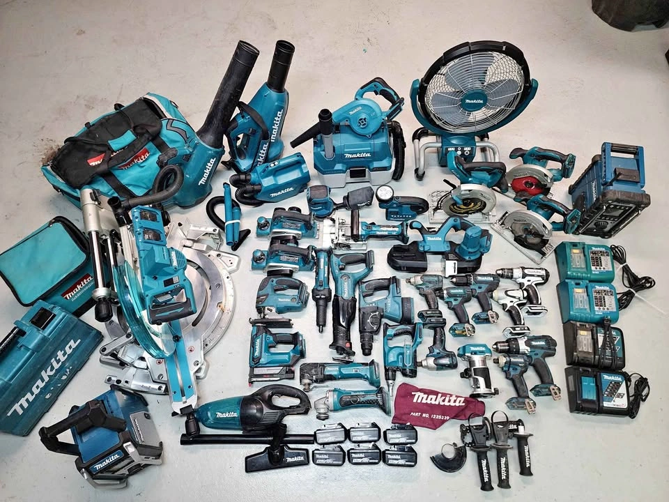 Lots of makita 18v cordless tools, chargers, batteries, etc. Everything is in perfect working condition, some are brand new never been used.