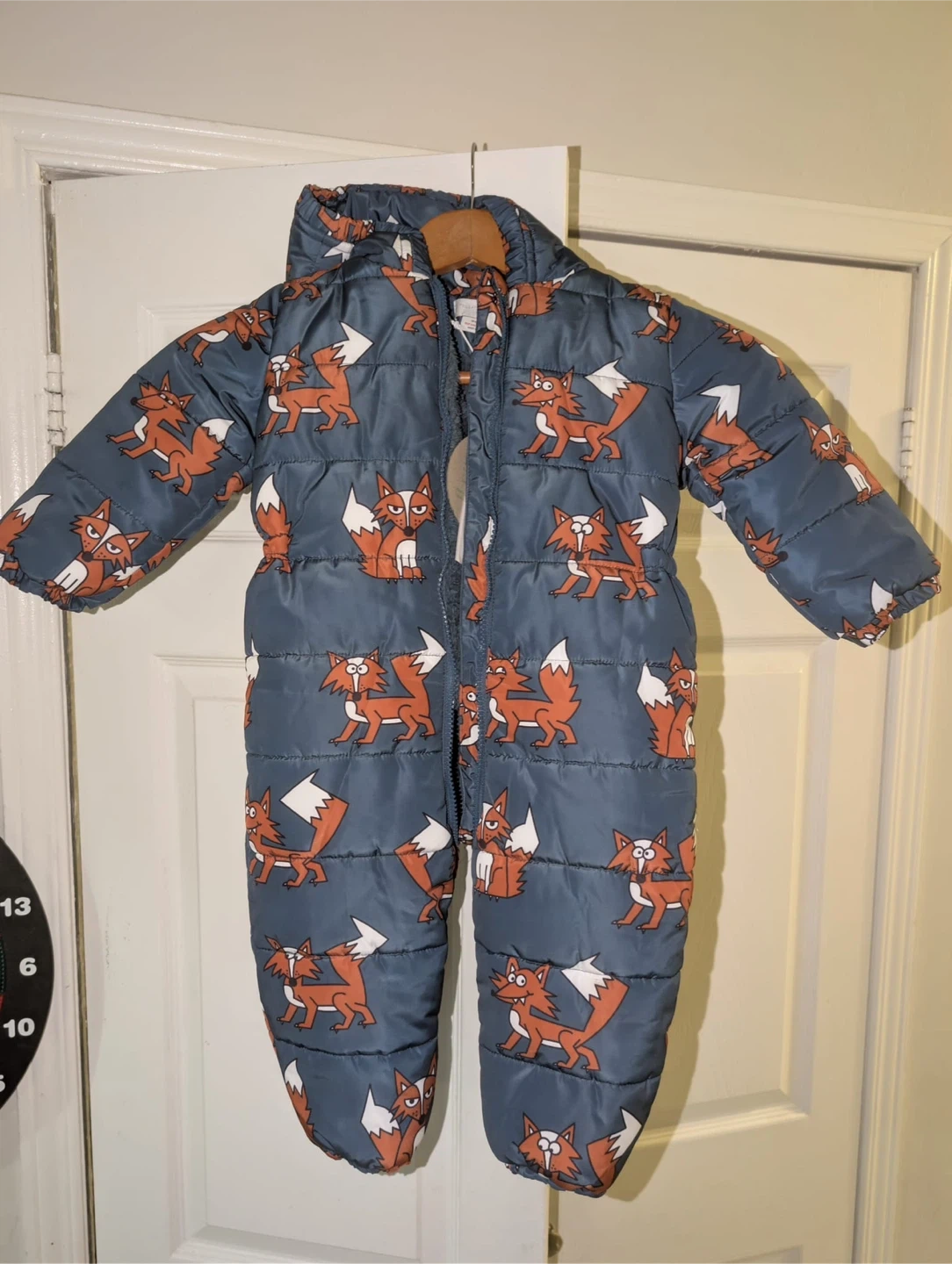 Brand new snowsuit , Keep your little one warm with this adorable Stella McCartney Kids snowsuit! It features a fun fox print and is sized for 18 months. Pet free and smoke free home . Original price is 258+tax….