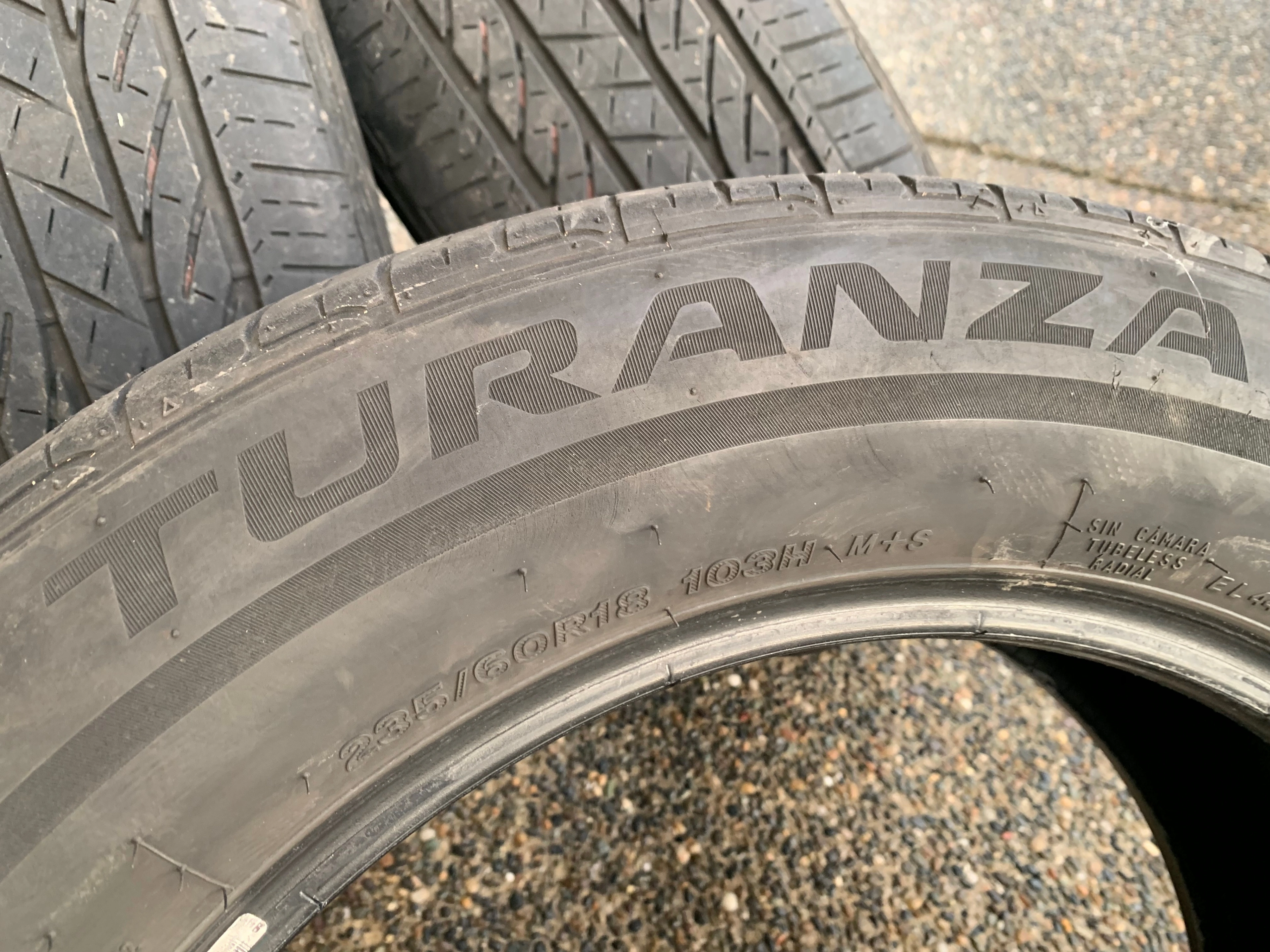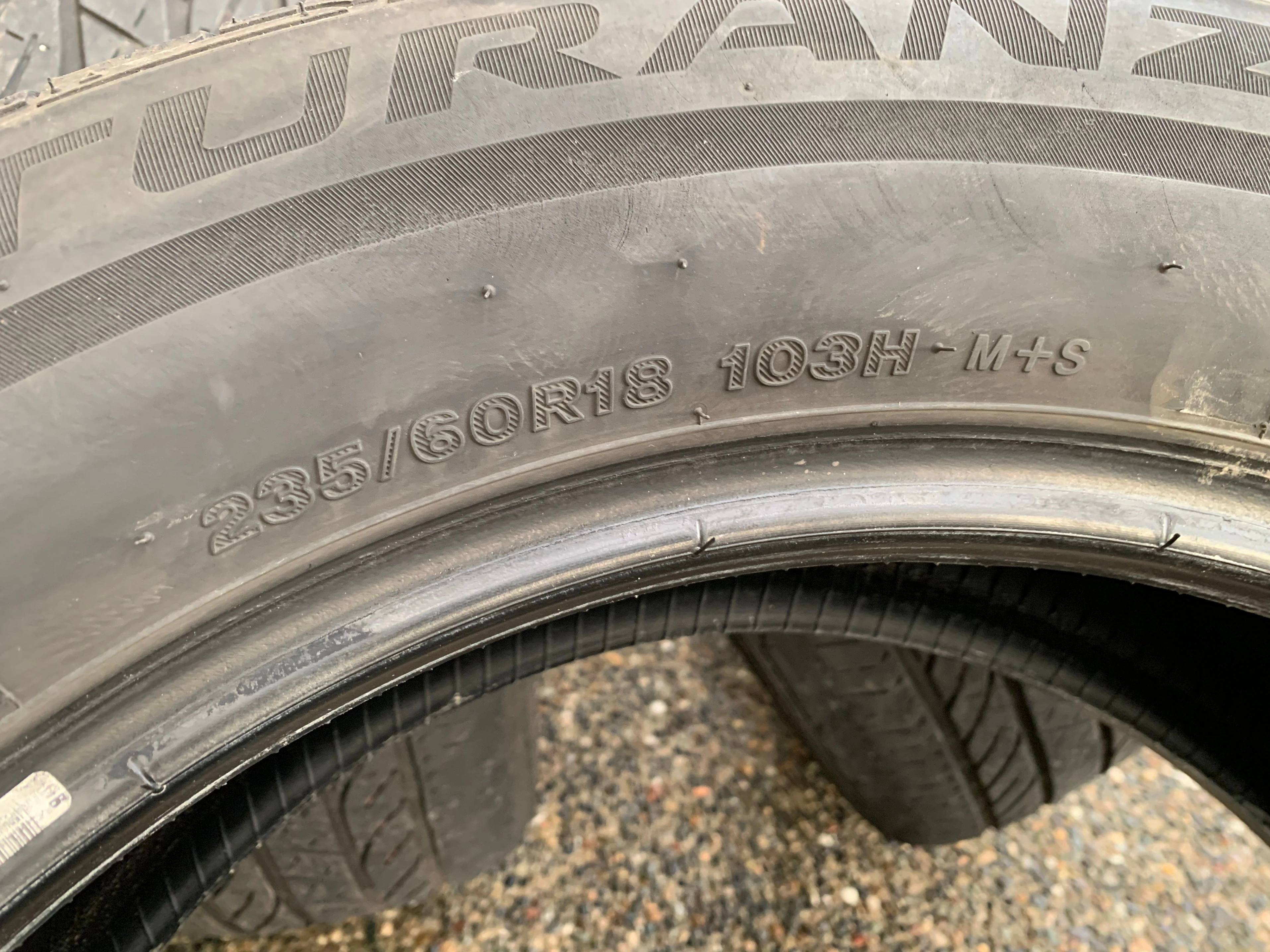 size 235/60/18 103H M+S Bridgestone Turanza EL440 with no repairs and 55% tread