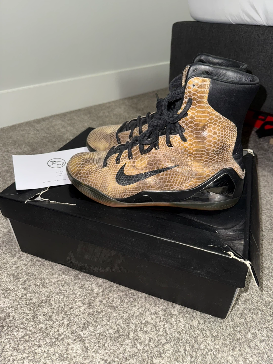 10Selling a pair of Nike Kobe 9 EM 'Python' basketball shoes. They show some signs of wear, but are still in great condition for playing ball or casual wear. Comes with the original box! Only worn a dozen (12) times tops