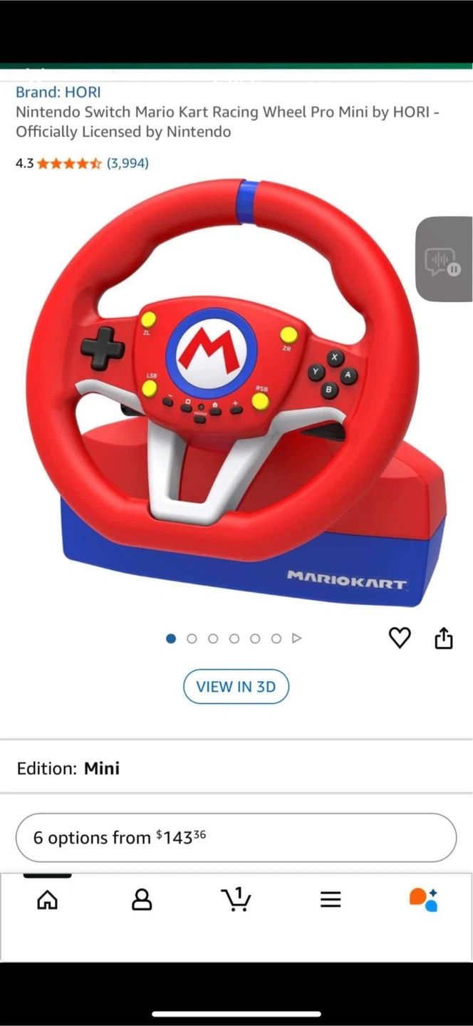 Get ready to race with this HORI Mario Kart Racing Wheel Pro Mini! Officially licensed by Nintendo, this racing wheel brings the arcade experience home. Perfect for Mario Kart fans of all ages!